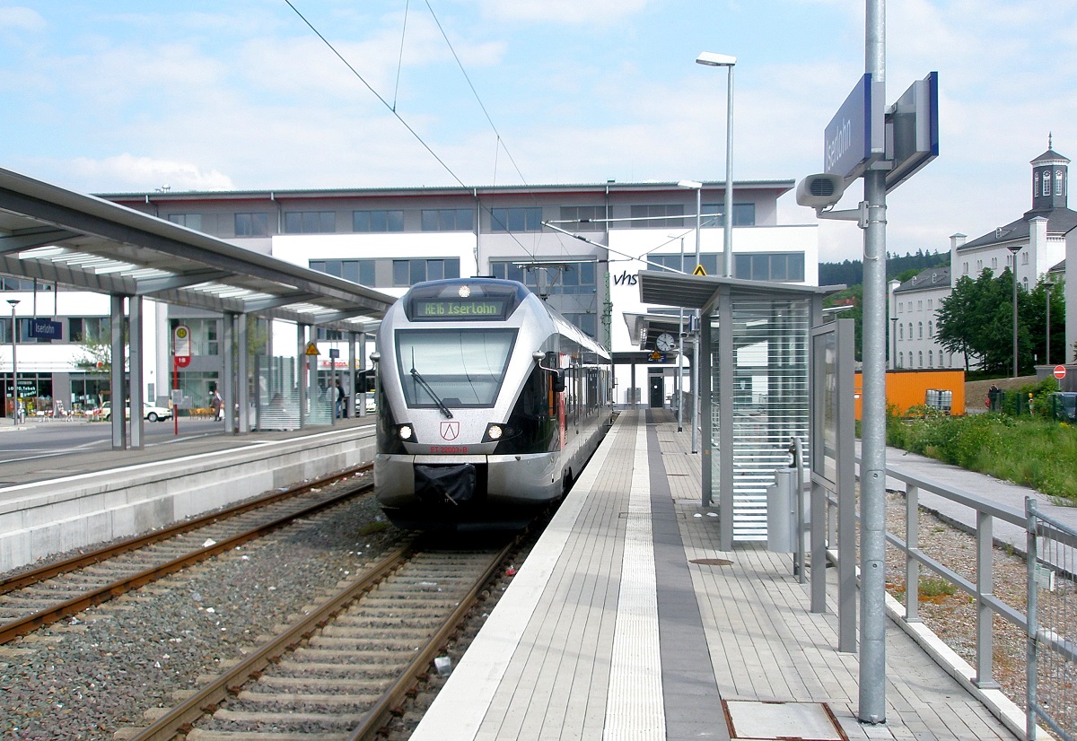 Der zweiteilige Stadler FLIRT DB 826 104-2 / 426 104-6 (94 80 0826 104-2 D-DB / 94 80 0426 104-6 D-DB) der DB Regio NRW, ex Abellio Rail NRW ET 22 2105, am 30.10.2022, als RB 91 "Ruhr-Sieg-Bahn" (Hagen - Siegen), von Kreuztal weiter in Richtung Siegen.