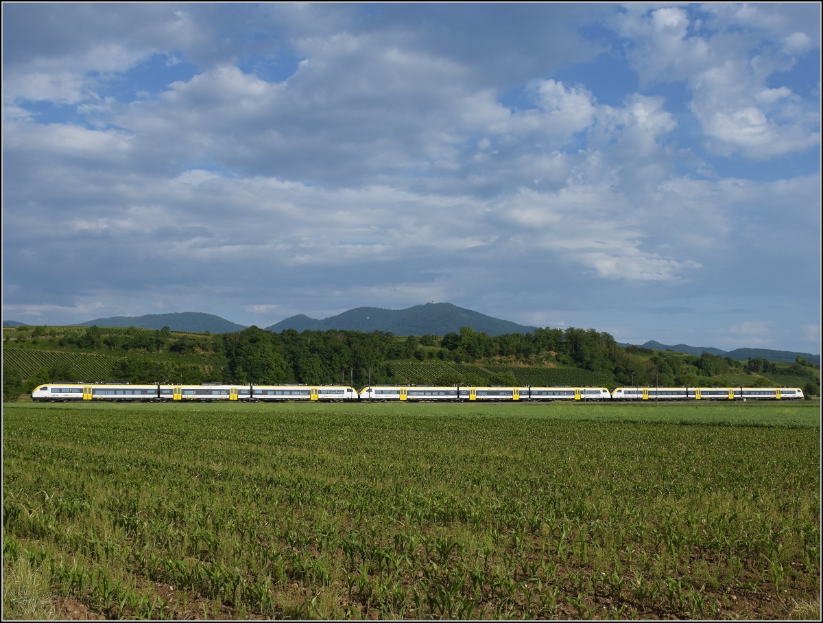 1462 010 als Beginn des Regenbogens. Noch angeschnitten ist 1462 003. Buggingen, Juni 2022.