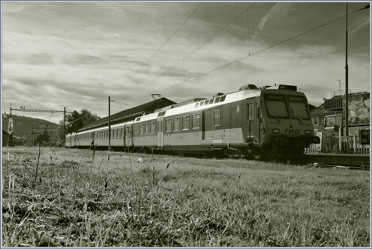 Der SBB RABe 522 209 erreicht den zur Wiederinbetriebnahme (ab 9.12.2018) der Strecke nach Belfort komplet neu gestalteten Bahnhof Delle.