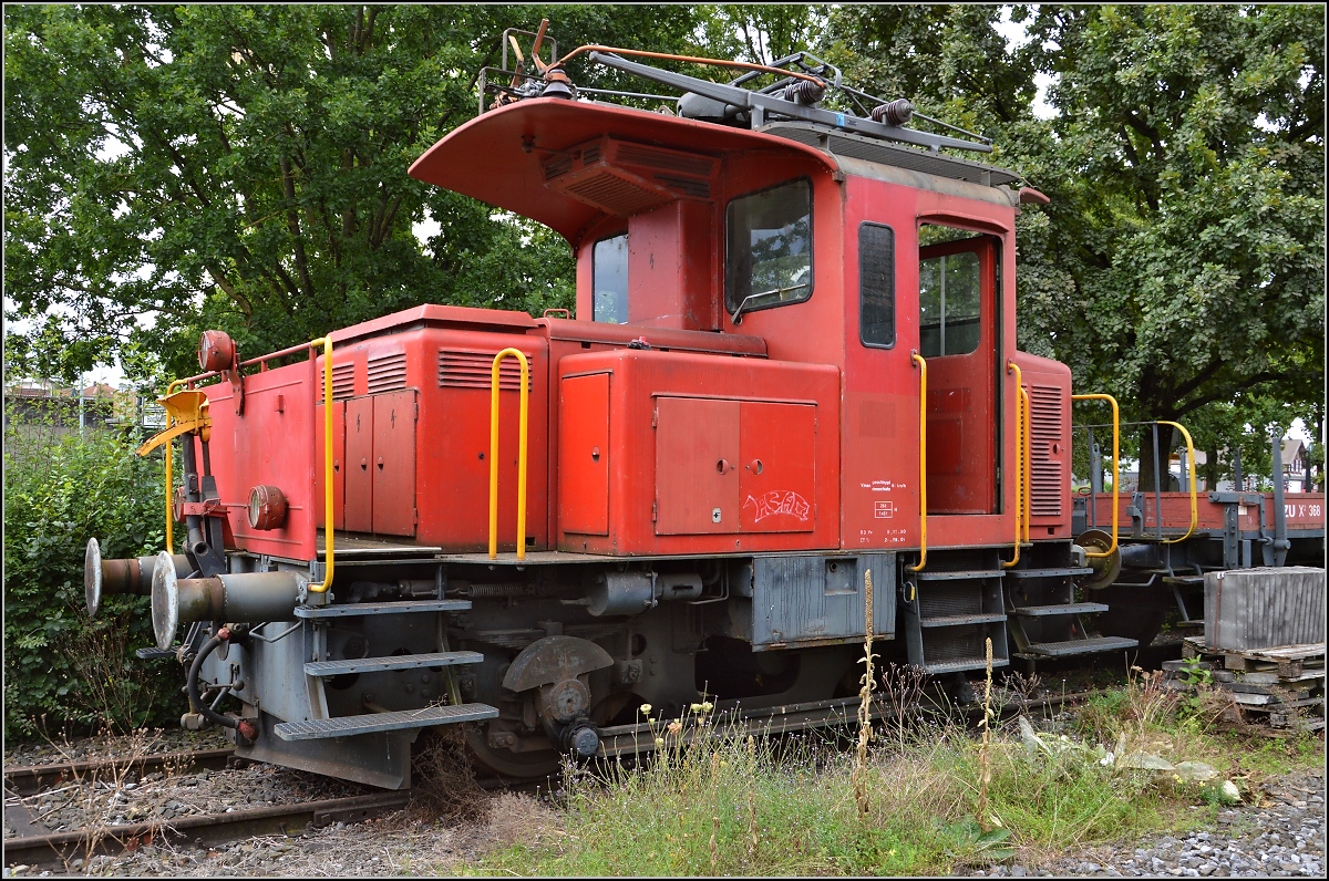 Tem II 295 wartet auf ihre Aufarbeitung. Das Antriebskonzept ist trotz Baujahr 1966 recht modern, denn dieser elektrische Rangiertraktor ist mit einem zusätzlichen Diesel für Fahrten auf Anschlussgleisen ausgestattet. Mit der Ee 923 oder der BR 187 wird das Prinzip wieder aufgegriffen. August 2014. Olli