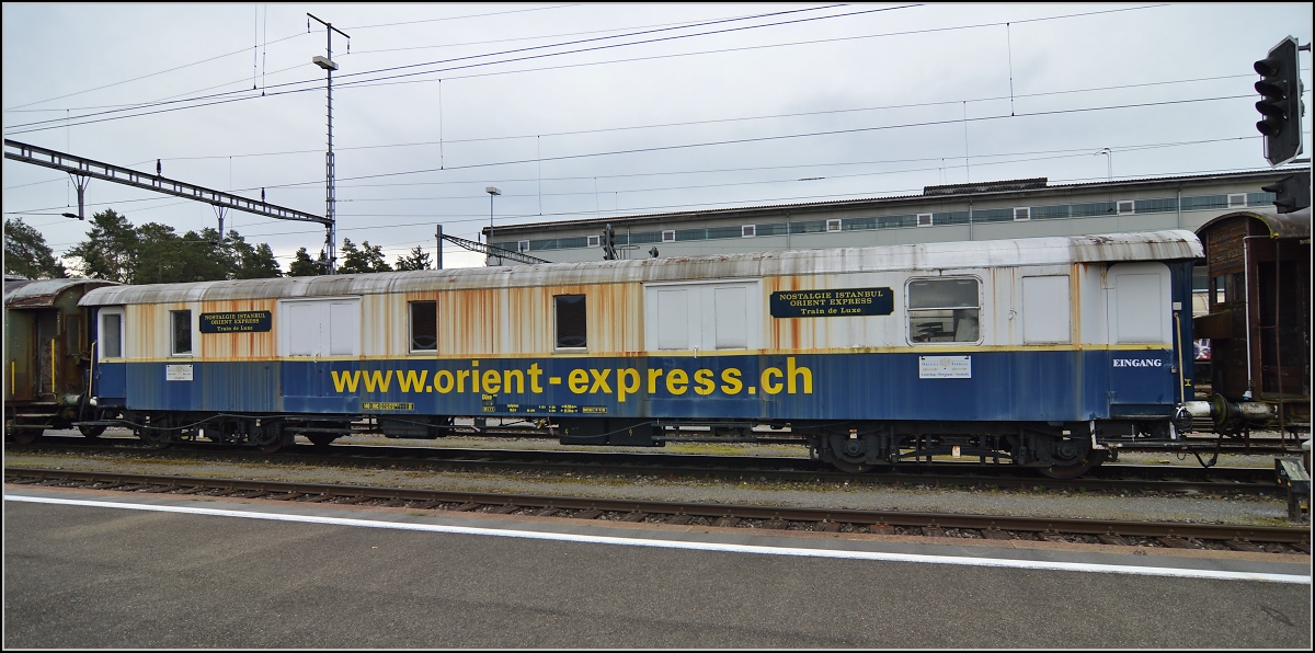 Die letzte Anmeldung zum Orientexpress ist doch schon einige Jahre her. Doch noch immer hängt das Schild am Begleitwagen zum Orientexpress. Sulgen, April 2014. Olli