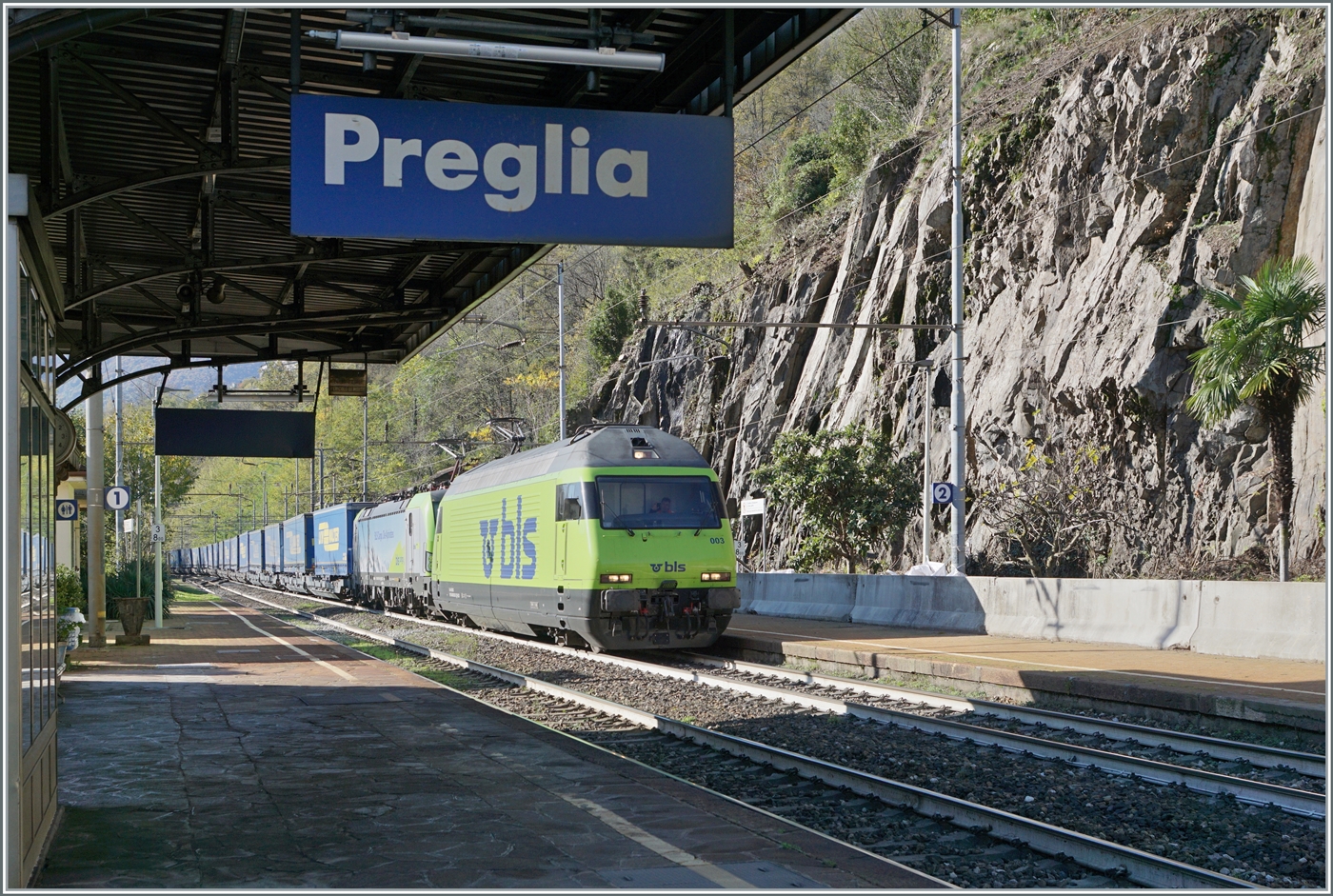 Kurz nach der Abfahrt von Domodossola begegnet unserm IR nach Brig diese von zwei BLS Re 482 geführte RoLa von Freiburg (i.B.) nach Novara.