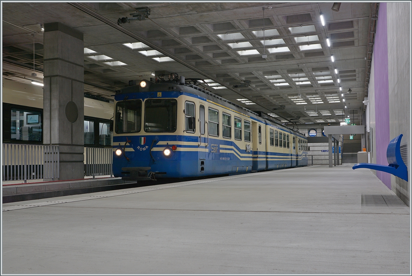 Der SSIF ABe 8/8 23 "Ossola" als Regionalzug 763 Domodossola - Re beim Halt in Trontano. 13 April 2014