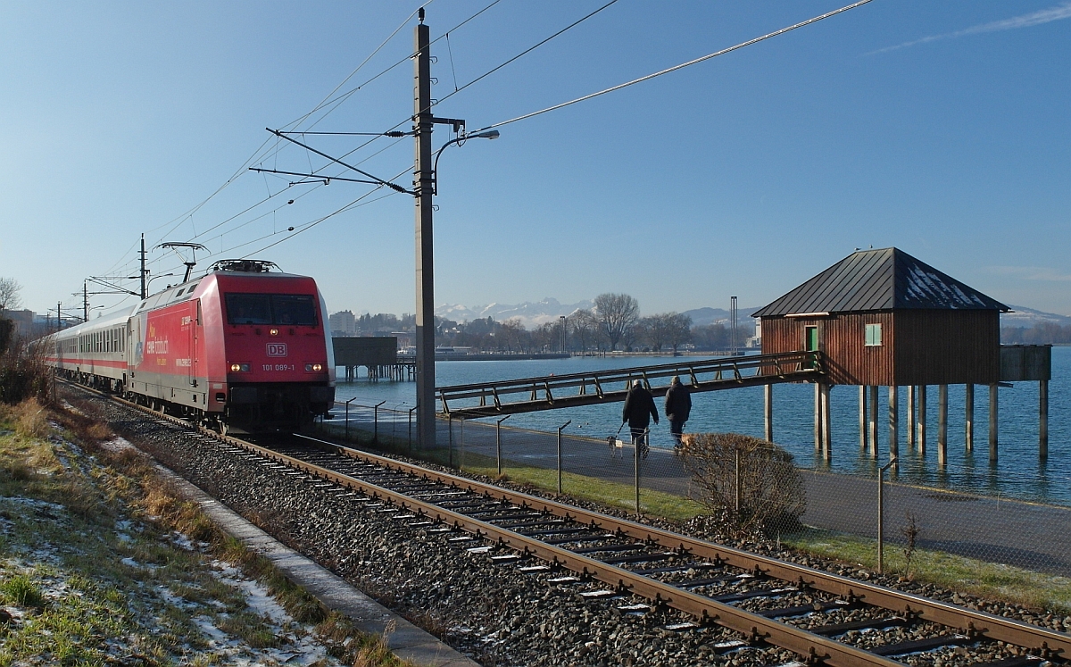 REX 5561 von Lindau nach Bregenz am 13.08.2011 bei Lochau. In Bregenz ändert sich die Zugnummer auf RJ 561. Auf Grund der Arlbergsperre fährt der Zug nicht mit dem bekannten Railjet-Zugmaterial/-Aussehen und auch nicht bis nach Wien sondern nur bis Bludenz.
