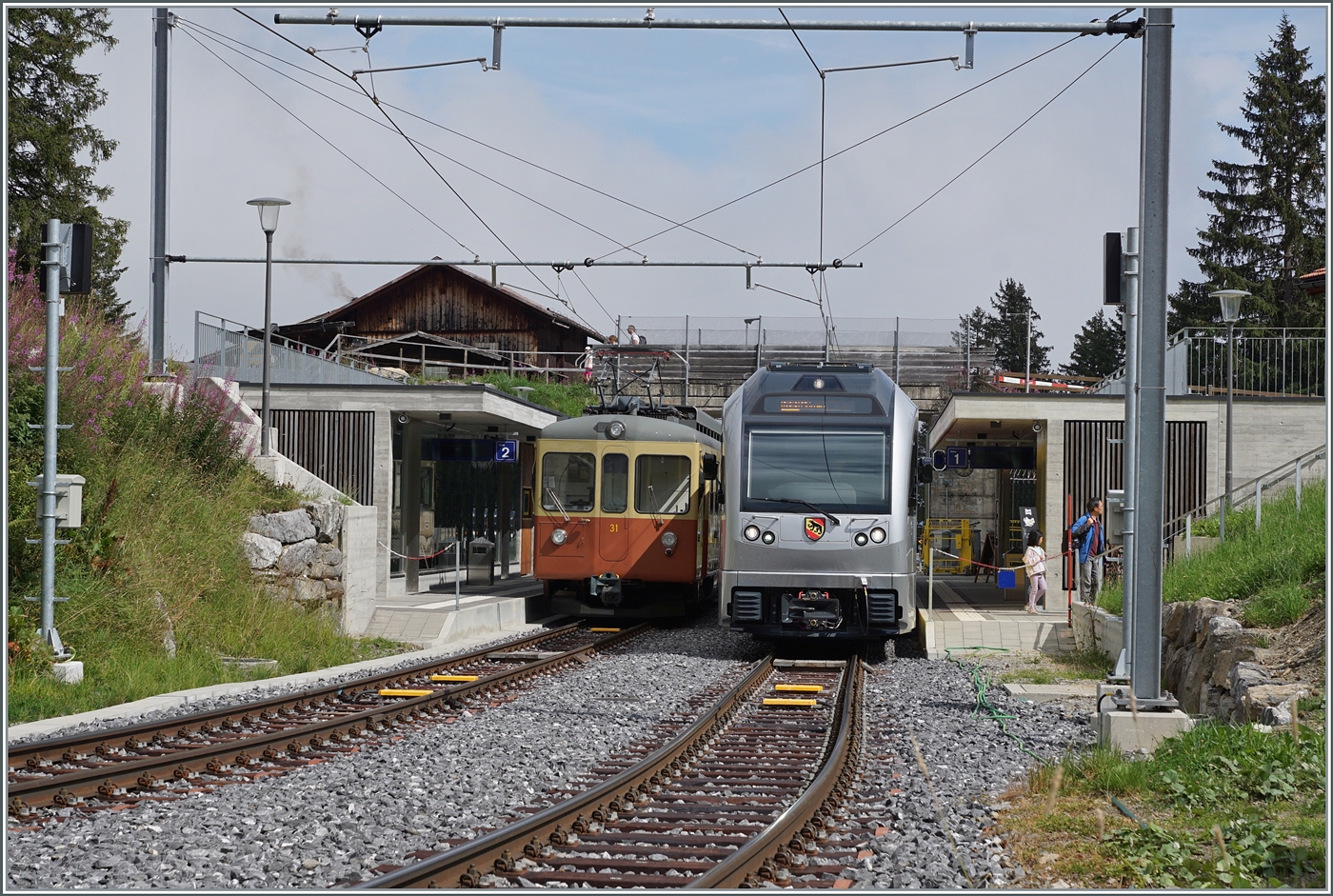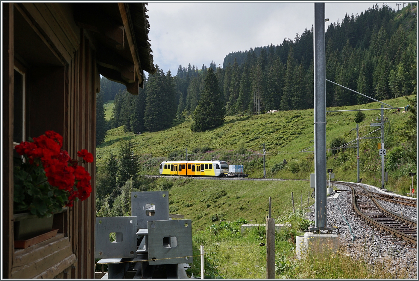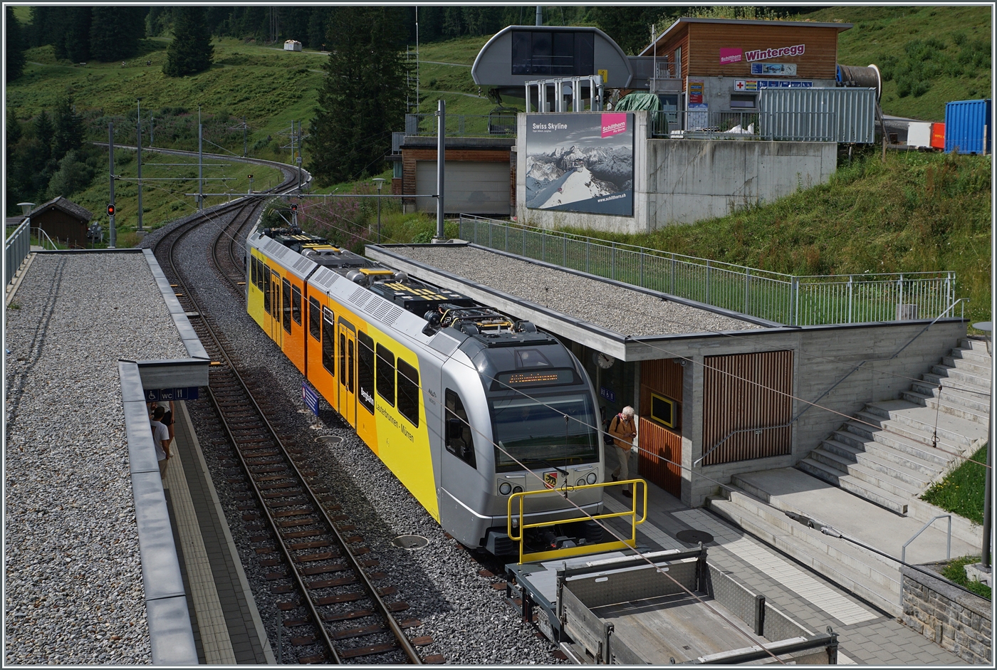 In Grütschalp wird der Be 4/6 102 "Mönch" bereitgestellt. Er wird den bis anhin gefahrenen Halbstundentakt zum Viertelstundentakt ergänzen.