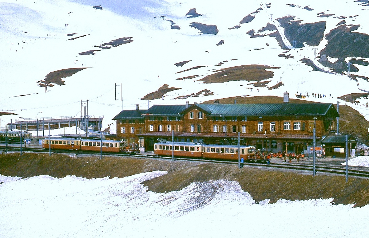 A Jungfraubach train ready to depart Kleine Scheidegg on 3rd September 1962.