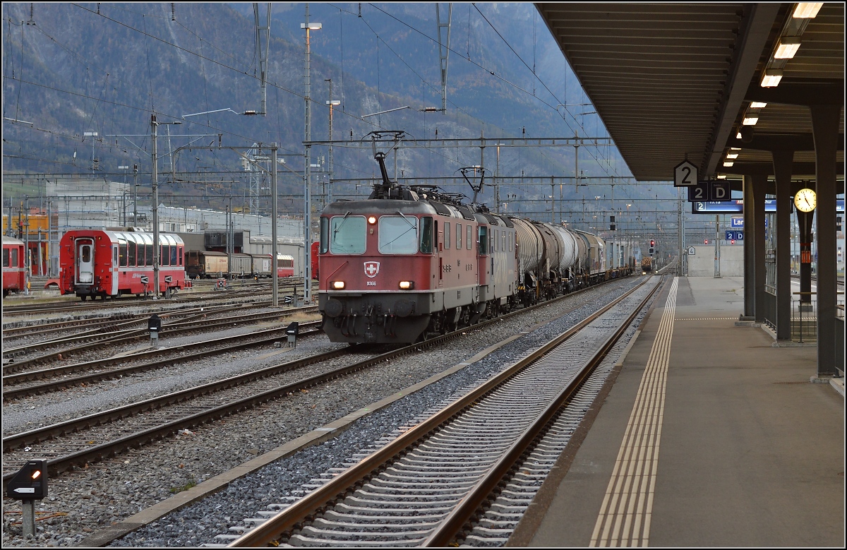 Tm 2/2 Nr.84 mit Spezialaufbau(5 Kameras und 2 Scheinwerfer)am 08.09.14 in Landquart.Der Zweck ist mir nicht bekannt!