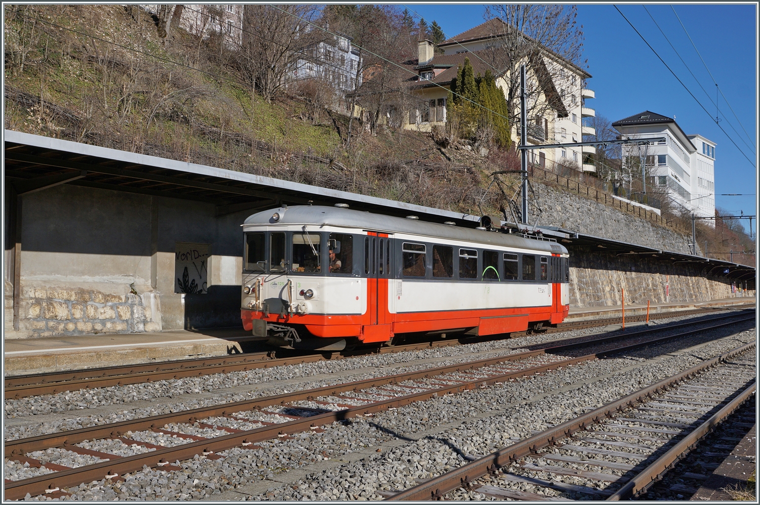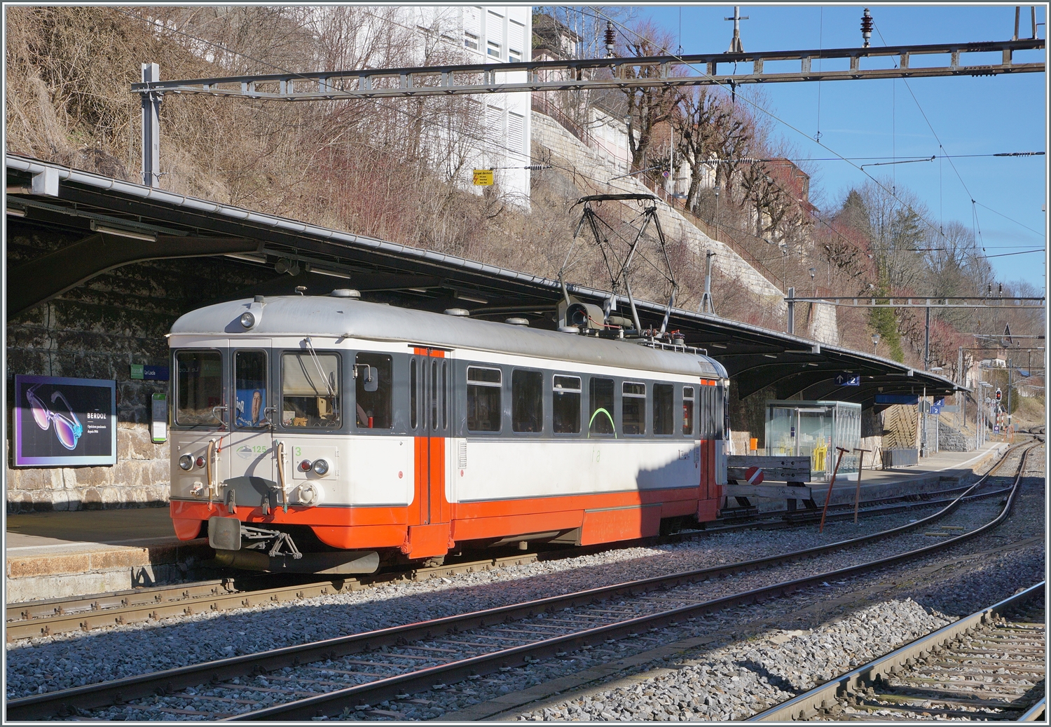BDe 4/4 5 der "Régional des Brenets", heute TransN, hat bald ausgedient und ein Bus wird auf der Bahnstrecke fahren. Der jüngere TransN-Bruder vom Typ Flirt I, RABe 527 331 trifft derweil in Le Locle ein. Mai 2023.