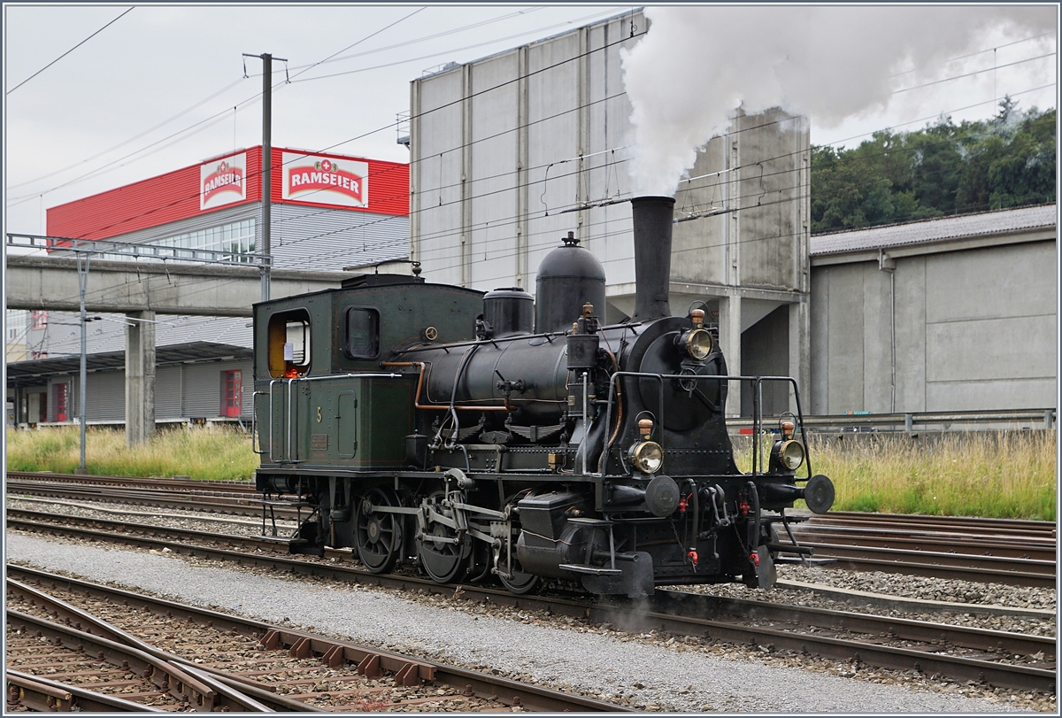 Die mit ihrem Dampfzug in Sursee eingetroffen und muss nur für das Manöver für die Rückfahrt (Umfahren) in die Güteranlage des Bahnhofs fahren. 27. Aug. 2017