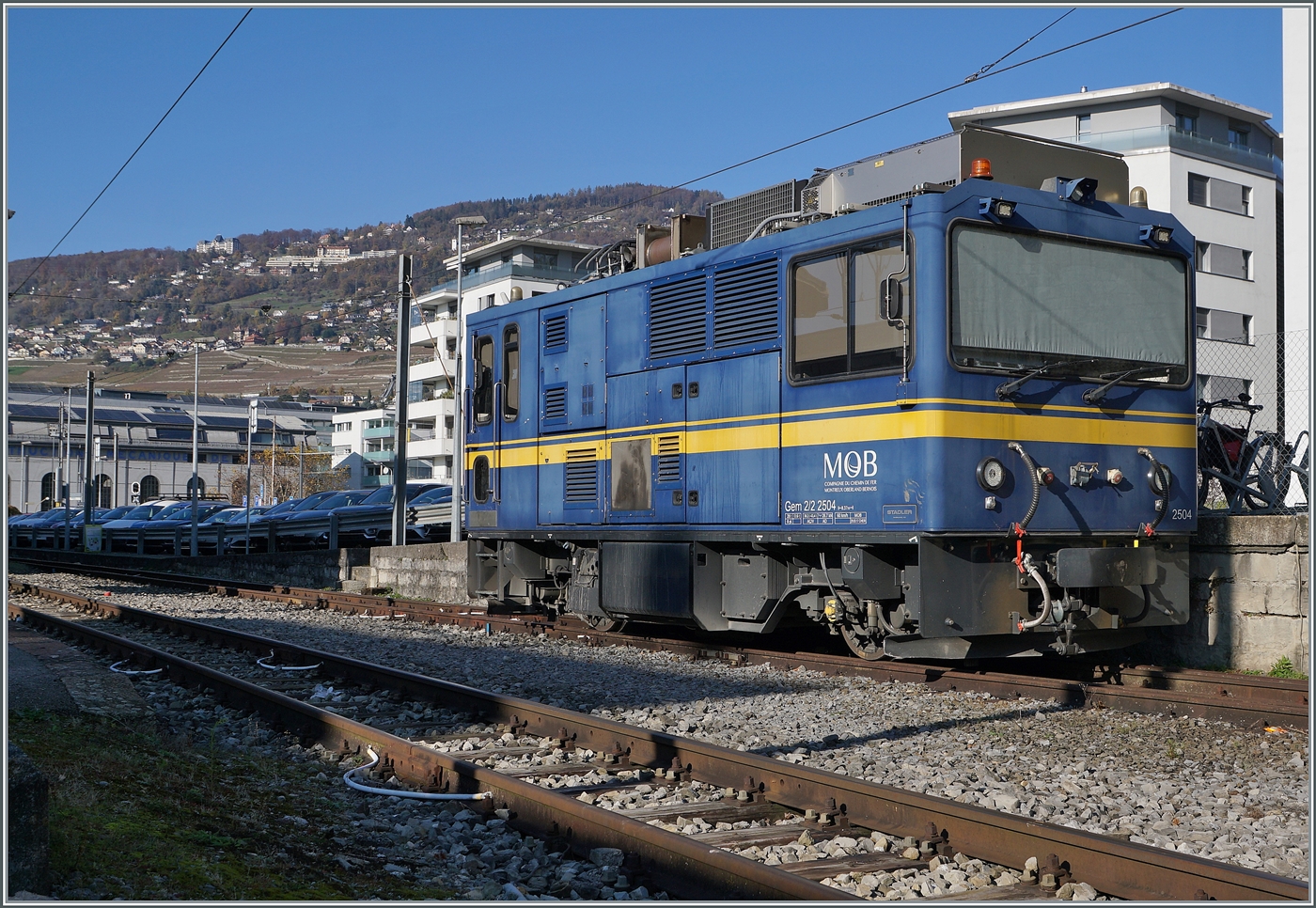 Die Blonay-Chamby g 2x 2/2 105 rangiert den aus Chaulin in Vevey angekommen Leerzug zum Umfahren ins Bahnhofsvorfeld.