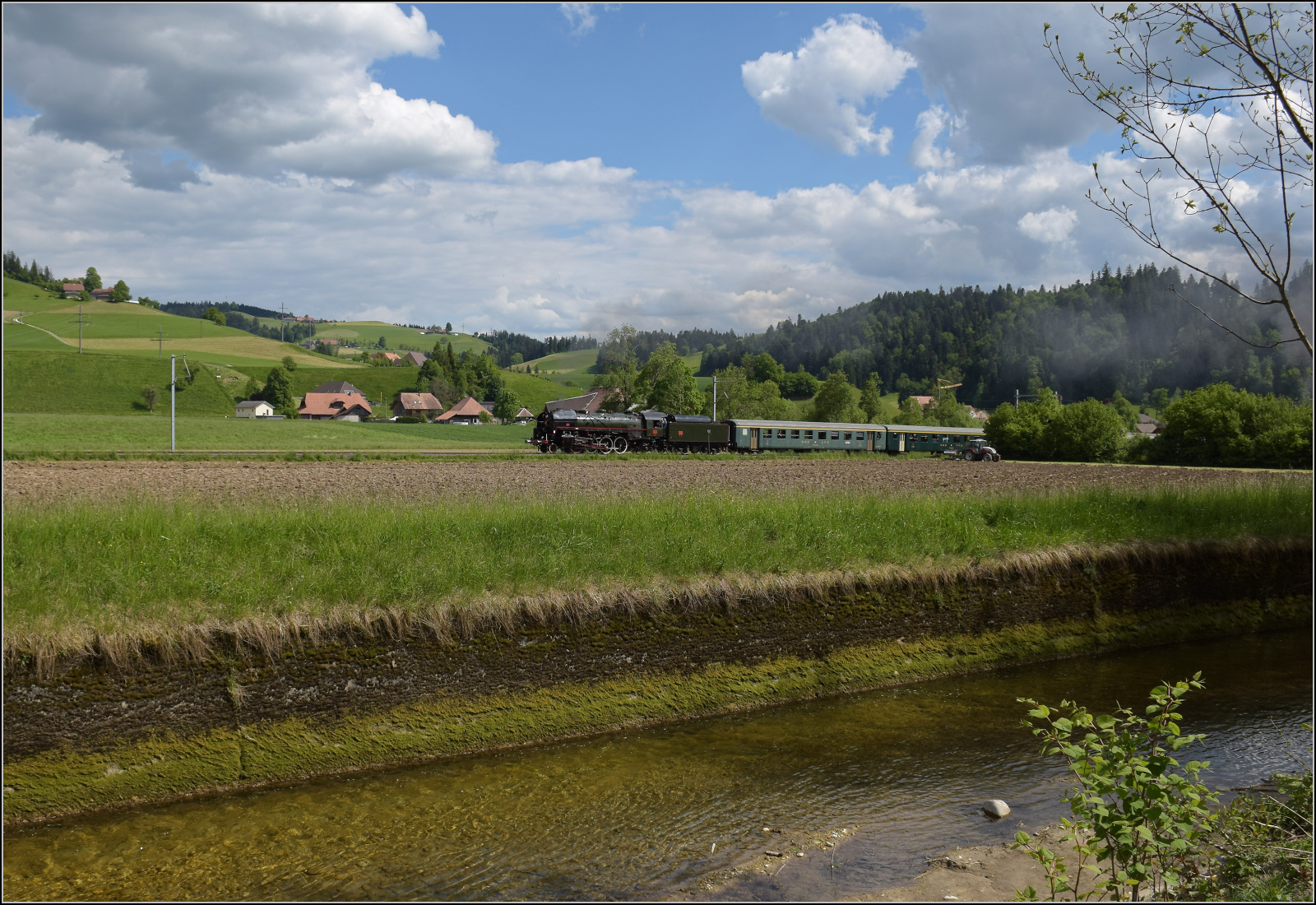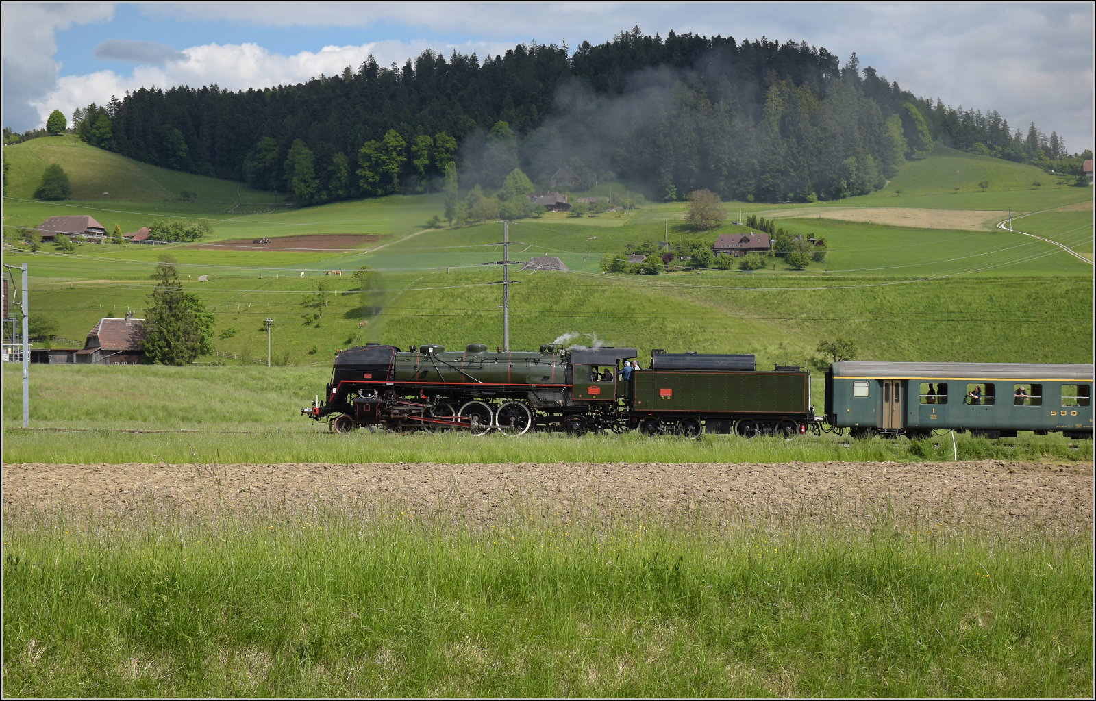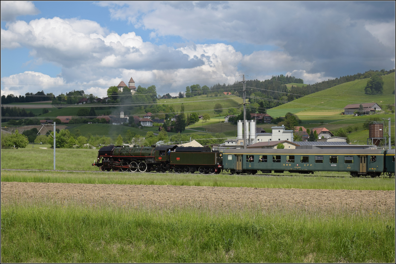 Dampftag Lyss 2018: Die mächtgie SNCF 141 R 1244 in Lyss auf der Fahrt in Dépôt.