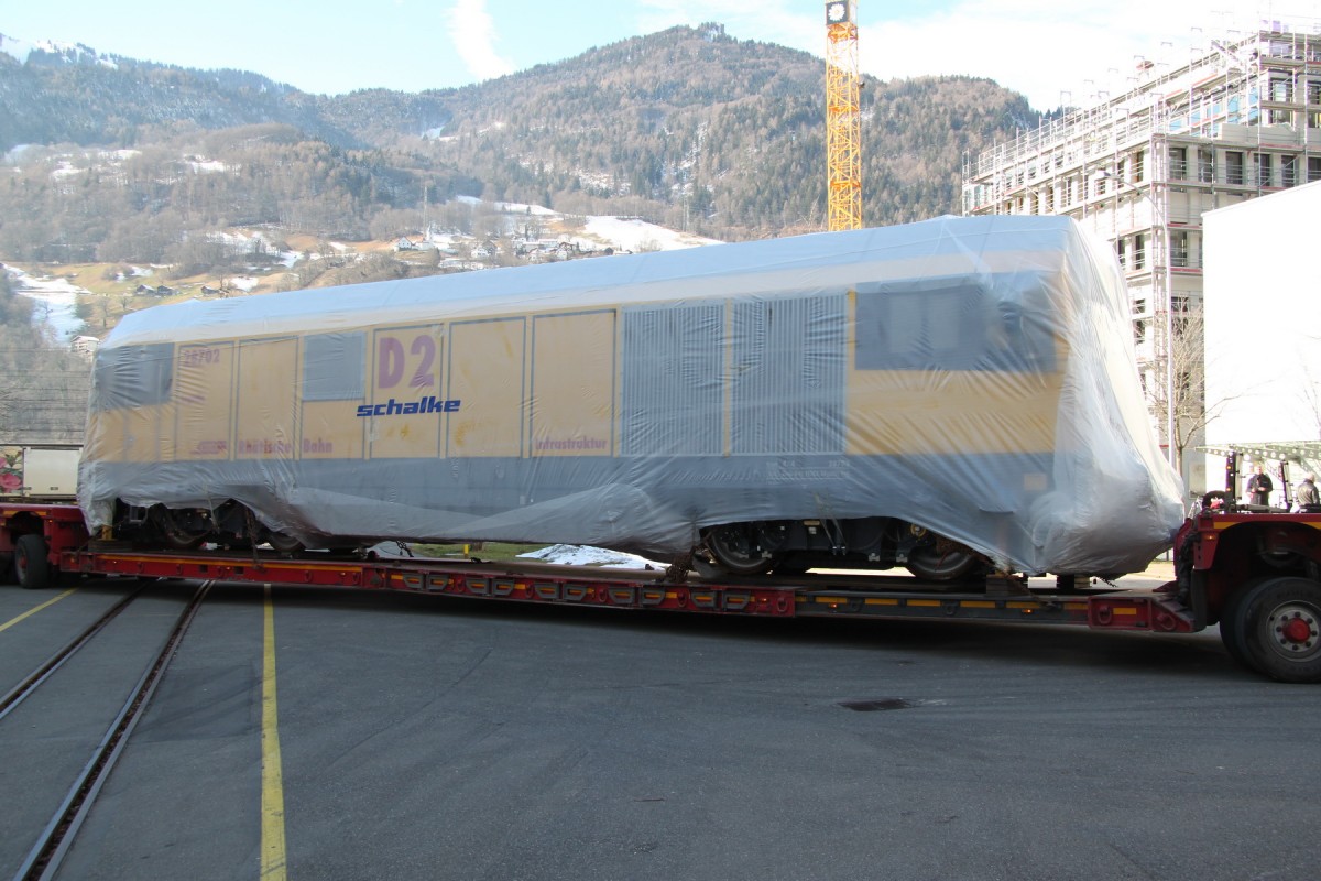Ein Blick ins MOB Werk von Chernex vom Bahnübergang aus auf die Gm 4/4 3003 und die kleine, noch immer als V 121 bezeichnete Diesellok daneben.