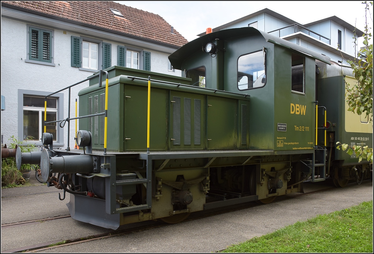 Fahrtag Wolfhuuser Bahn. Tm 2/2 111 in Wolfhausen. Hier kann man die Anfänge des Unternehmens Stadler schön betrachten. Lange Jahre wurden nur Kleinserien hergestellt. Oktober 2021.