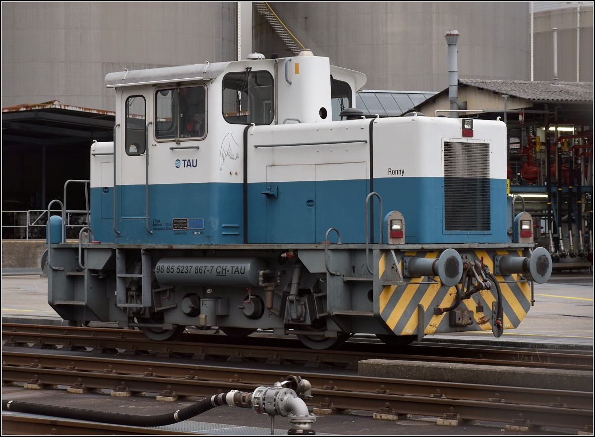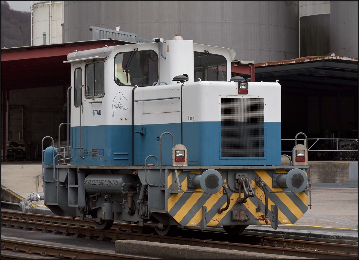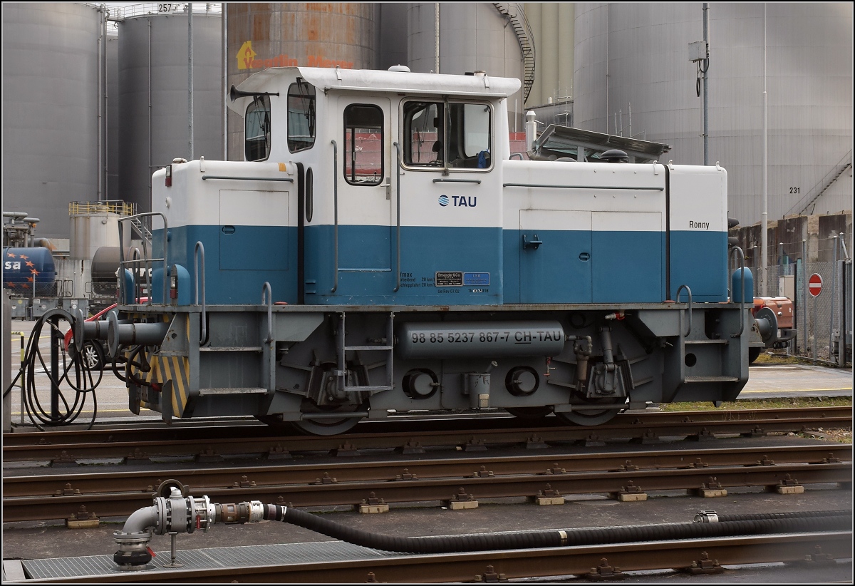 Der Tm 237 312 steht in Fleurier; auf dem Bild sind alle drei in den letzten Jahren in der Abfolge verwendete Abkürzungen der Val de Travers Bahn zu sehen: auf dem Güterwagen S511 die ursprüngliche Bezeichnung RTV, auf dem Tm die lange Zeit übliche Bezeichnung trn und am Flirt im Hintergrund die nun gültige Bezeichnung transN.