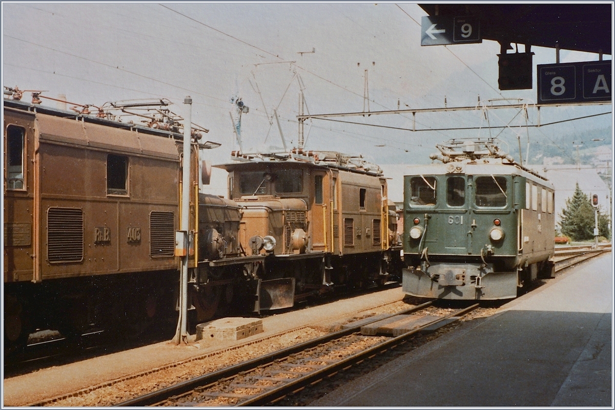 Mitte der 1970er Jahre rangiert Ge 6/6 I 411 im Bahnhof St. Moritz (Foto: Gerda Lüdicke)