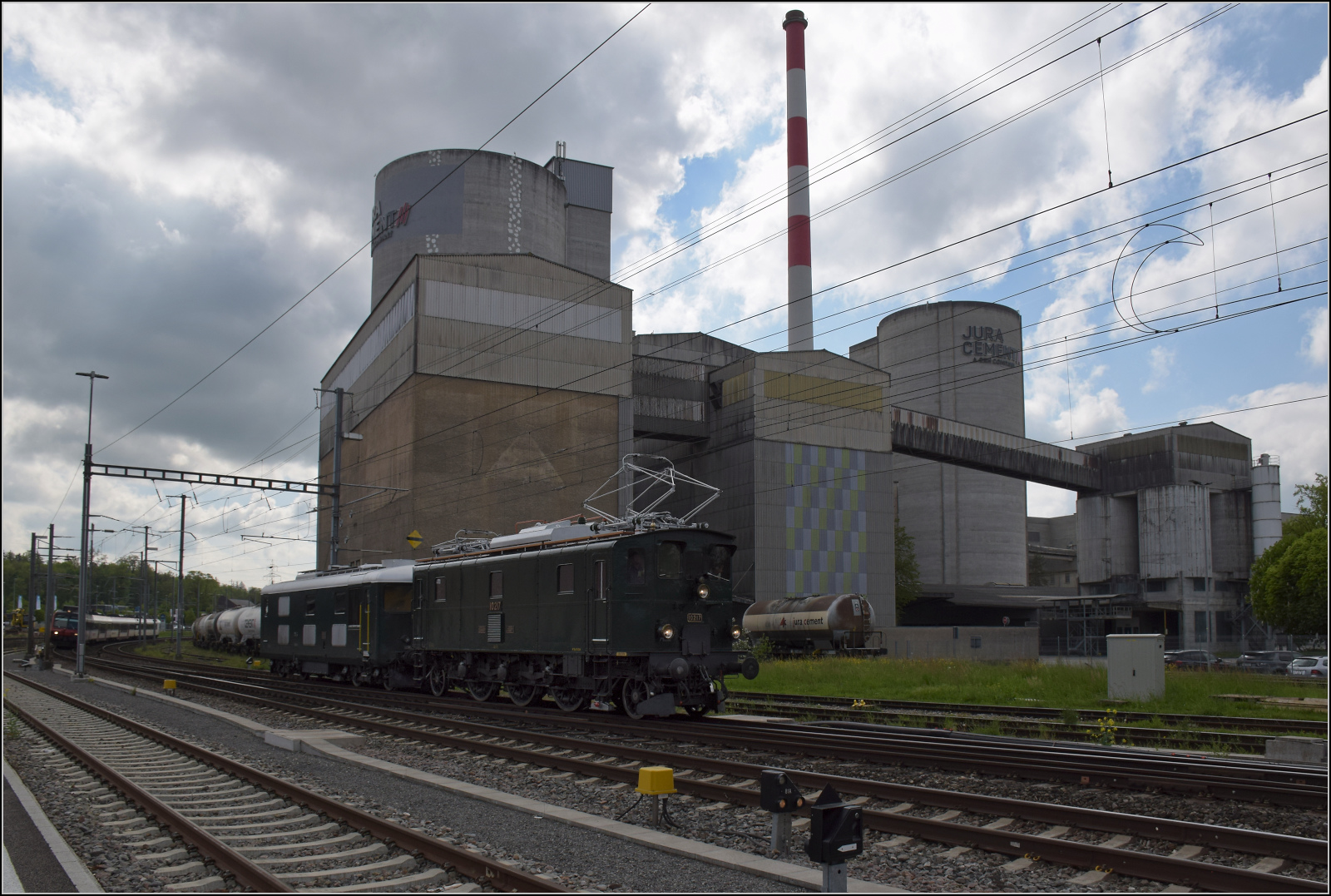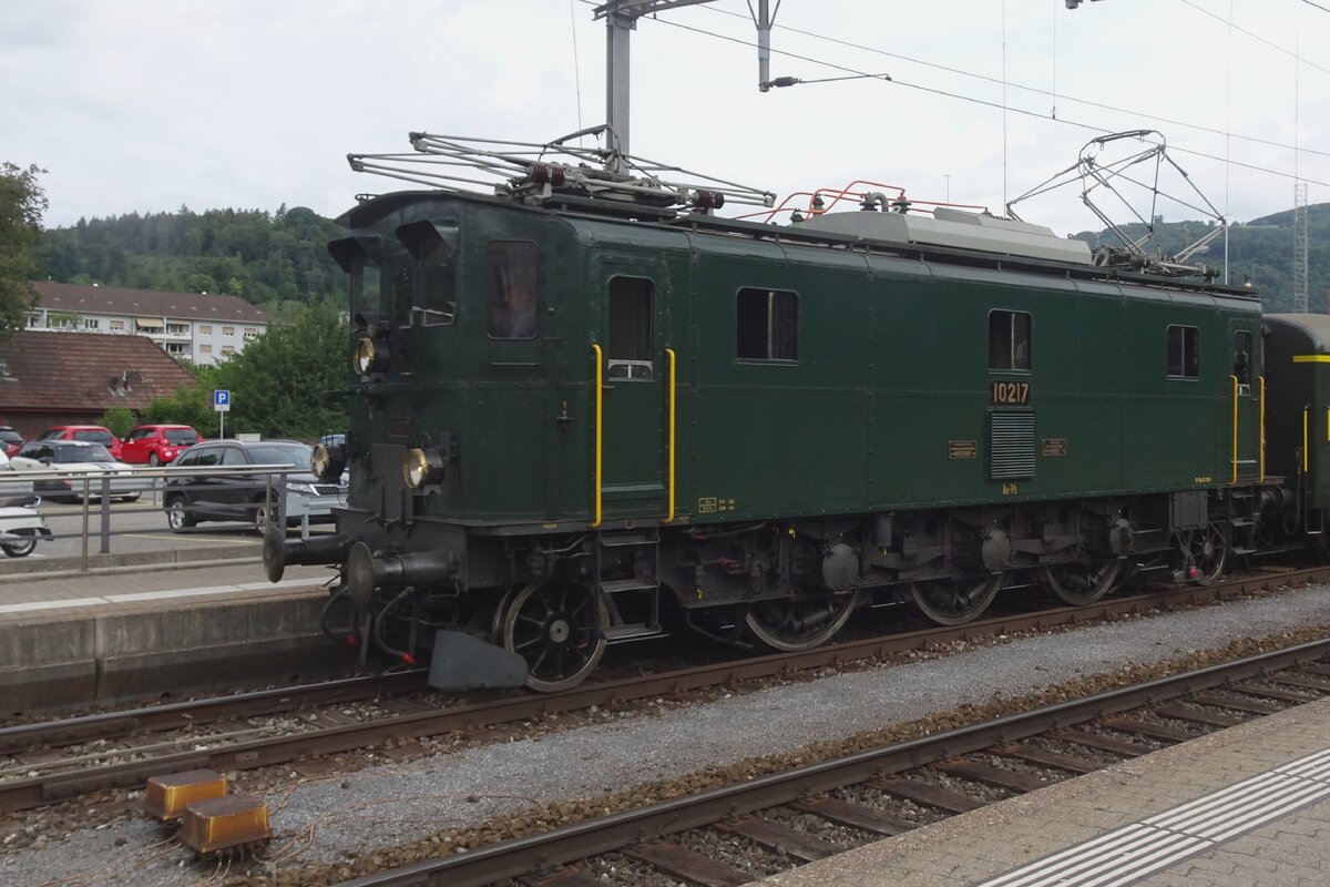 Zum Fest 150 Jahre Nationalbahn durfte Bm 4/4 II 18451 nach einer kleinen Ewigkeit von 10 Jahren endlich wieder an die frische Luft und wurde von Ae 3/5 10217 an ihren früheren Einsatzort nach Etzwilen gebracht. Hier in voller Breitseite am Beginn der Reise in Dulliken, April 2025.