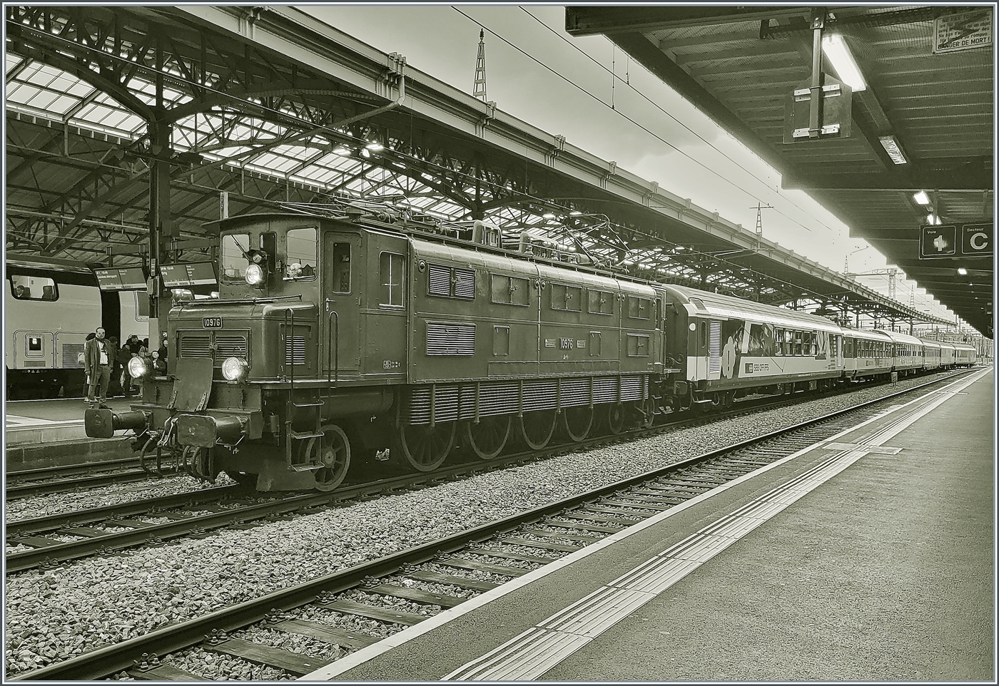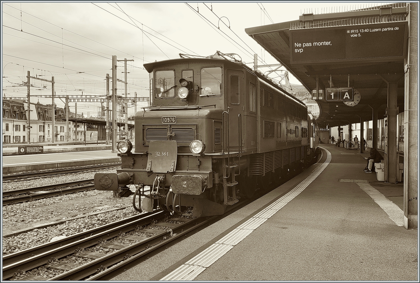 Der Zirkus kommt! Und dies mit der Bahn: eine Ae 4/7 rangiert in Vevey ihren angekommen Zug zur Entladerampe.