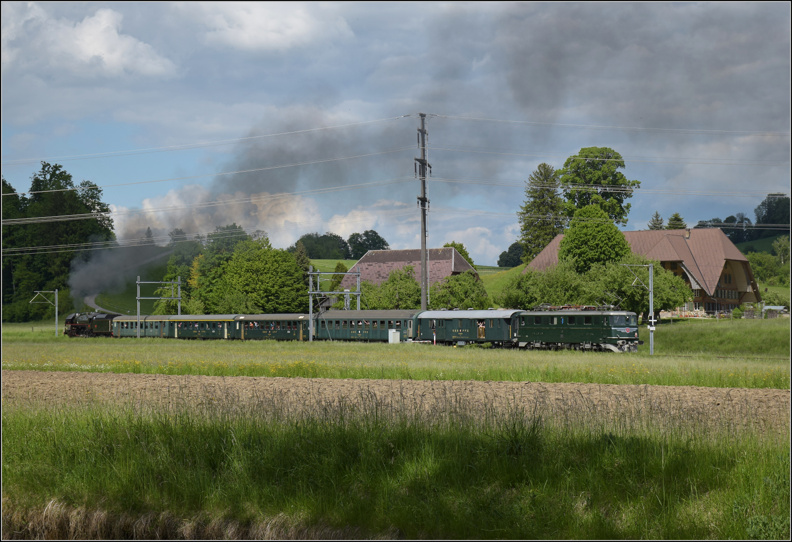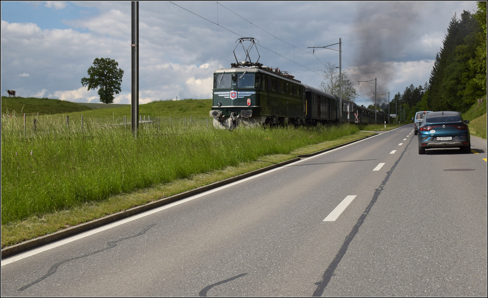 SBB Historic 11411 steht am verregneten 19 September 2021 in Erstfeld während das Bahnhofsfest der Gotthard Bahntage.