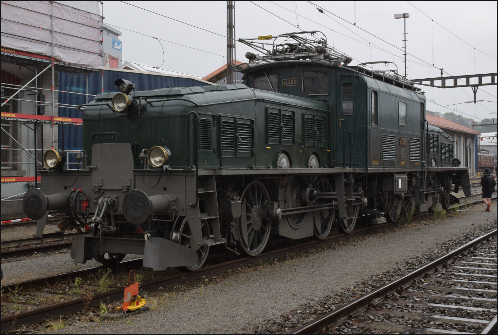 Am 19 September 2019 steht 14253 ins verregneten Erstfekld während die Erstausgabe (und hoffentlich nicht der Letztausgabe) des Bahnhofsfests "Bahnen am Gotthard" -mit jeden Stunde ein Sonderzug zwischen Erstfeld und Göschenen.