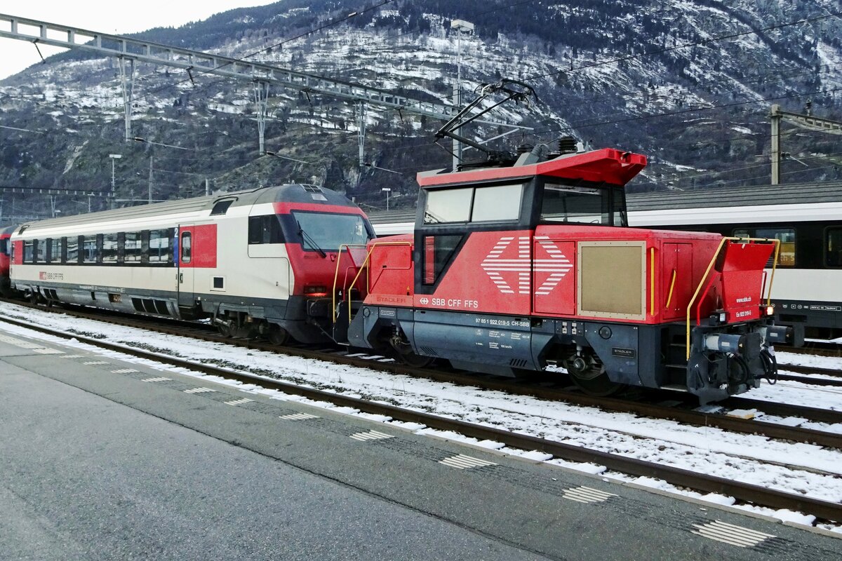 Die 3 Routen zwischen Zürich und Oerlikon: Auf der Brücke, die von "Hardbrücke" Richtung Käferberg und Oerlikon führt, rangiert eine Komposition mit der kleinen Ee 922 009. Aufnahme bei baldigem Untergang der Sonne aus einem von Zürich wegfahrenden Zug (daher die Spiegelungen). 5.März 2025