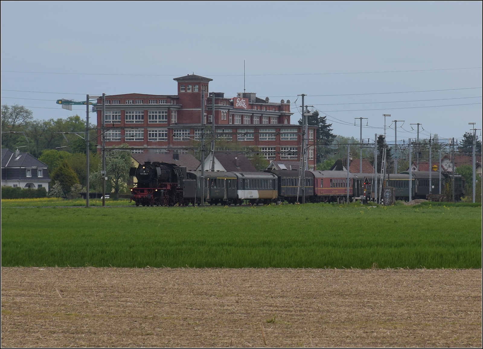 Die SBB Re 4/4 II 11162 hält mit ihrem Regionalzug nach Arth Goldau in Wohlen kurz an. Neben der Lok sind natürlich besonders die damals im Regionalzugverkehr eingesetzten Wagen von Interesse und, ganz selbstverständlich steht am Güterschuppen ein gedeckte Güterwagen zum verladen von Stückgüter, dank RIV EUROP konnten damals alle Wagen der teilnehmenden Bahnen freizügig verwendet werden.