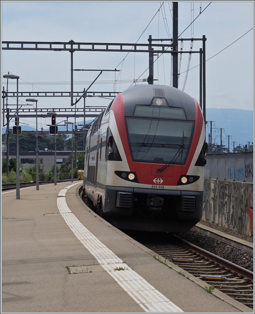 Eine SBB Re 460 ist mit einem IR 90 von Brig nach Genève Aéroport in Versoix unterwegs.