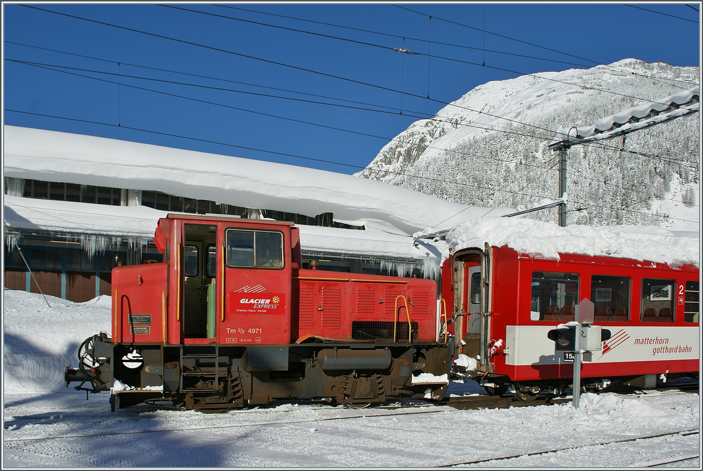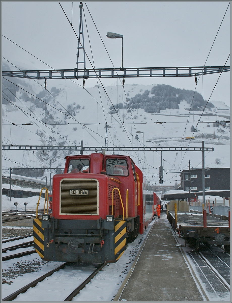 Hier zeigt sich die kleine Lok bei rangieren eines RhB Wagens in Chaulin.