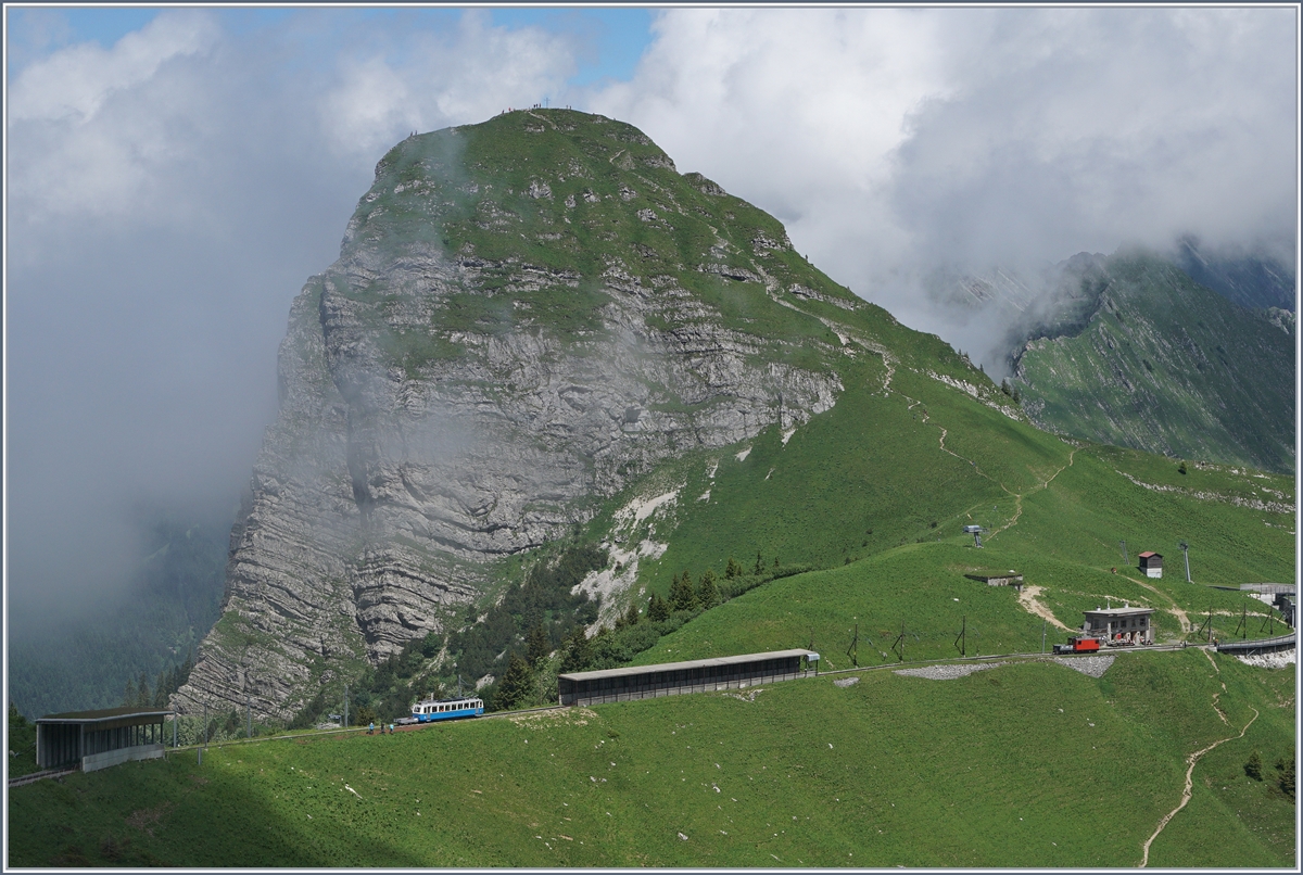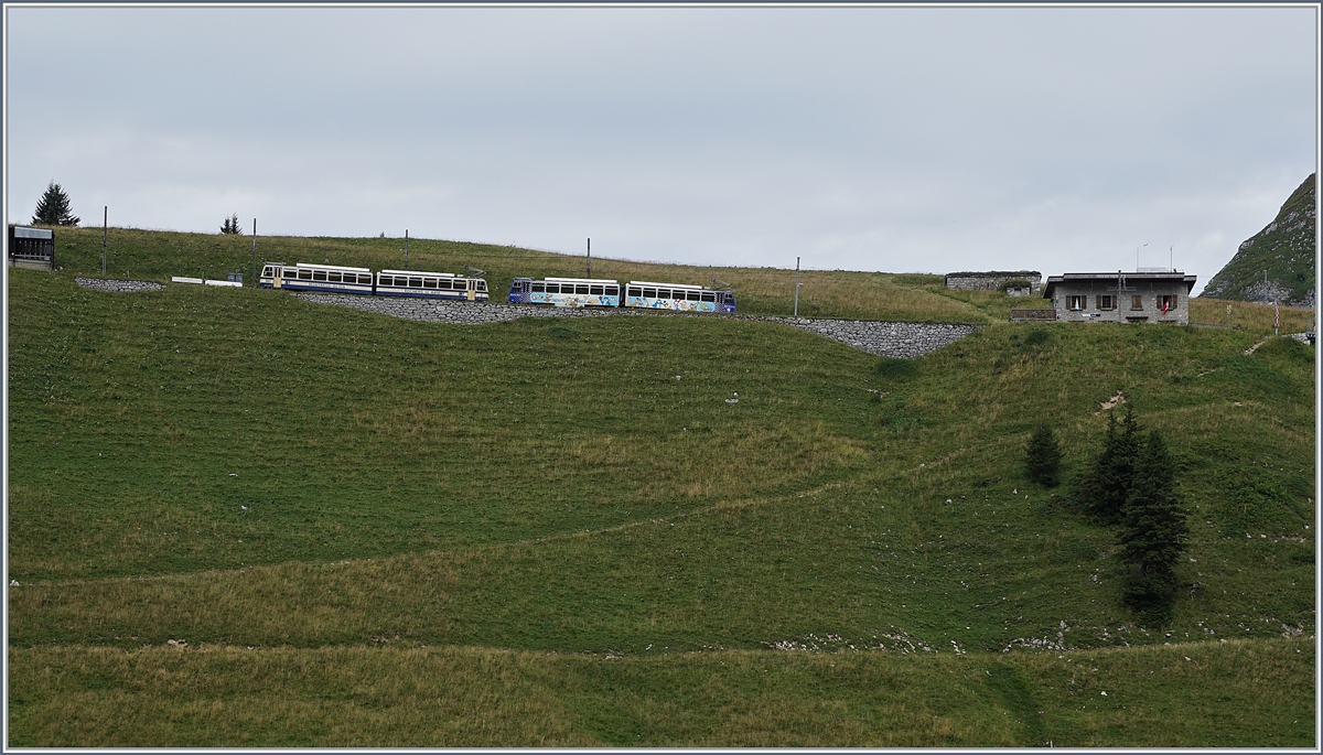 Der Bhe 2/4 207 verlässt den Bahnhof Jaman. Die "Fléche" wurden gegen das Ende ihrer Einsatzzeit nur noch sporadisch eingesetzt, ein "sicheres" Datum war jeweils der "Rochers de Naye"-Lauf bei welchem die Rocheres de Naye-Bahn auf die Triebwagen zurückgriff.