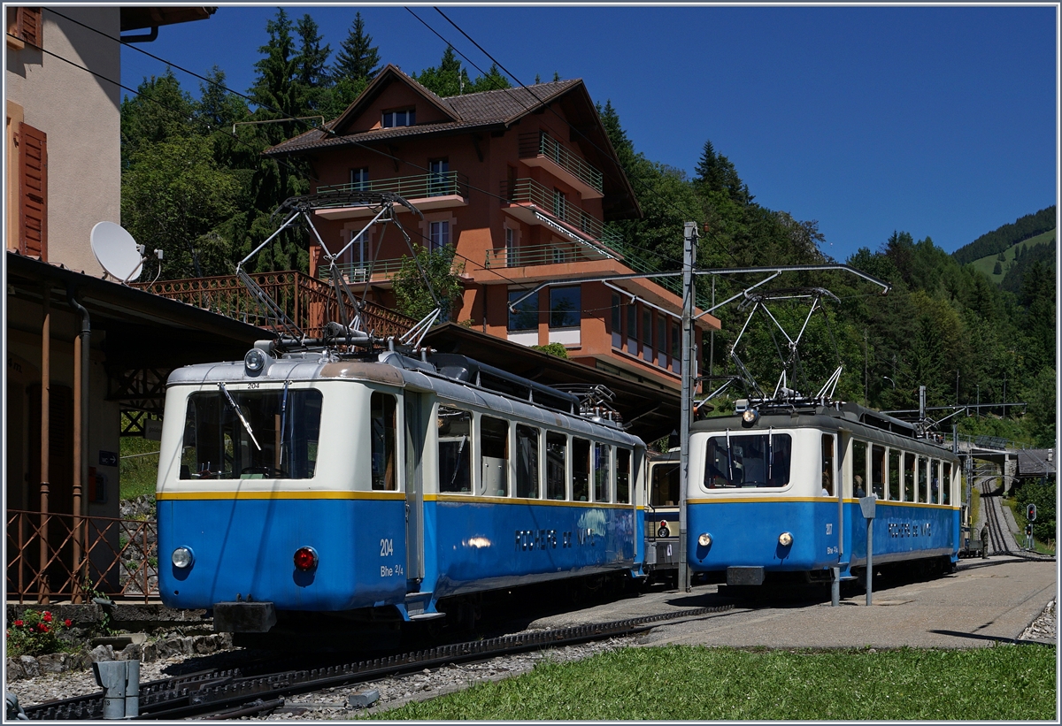 Die beiden Rocheres de Naye Bhe 4/8 304 und 304 erreichten Caux.
