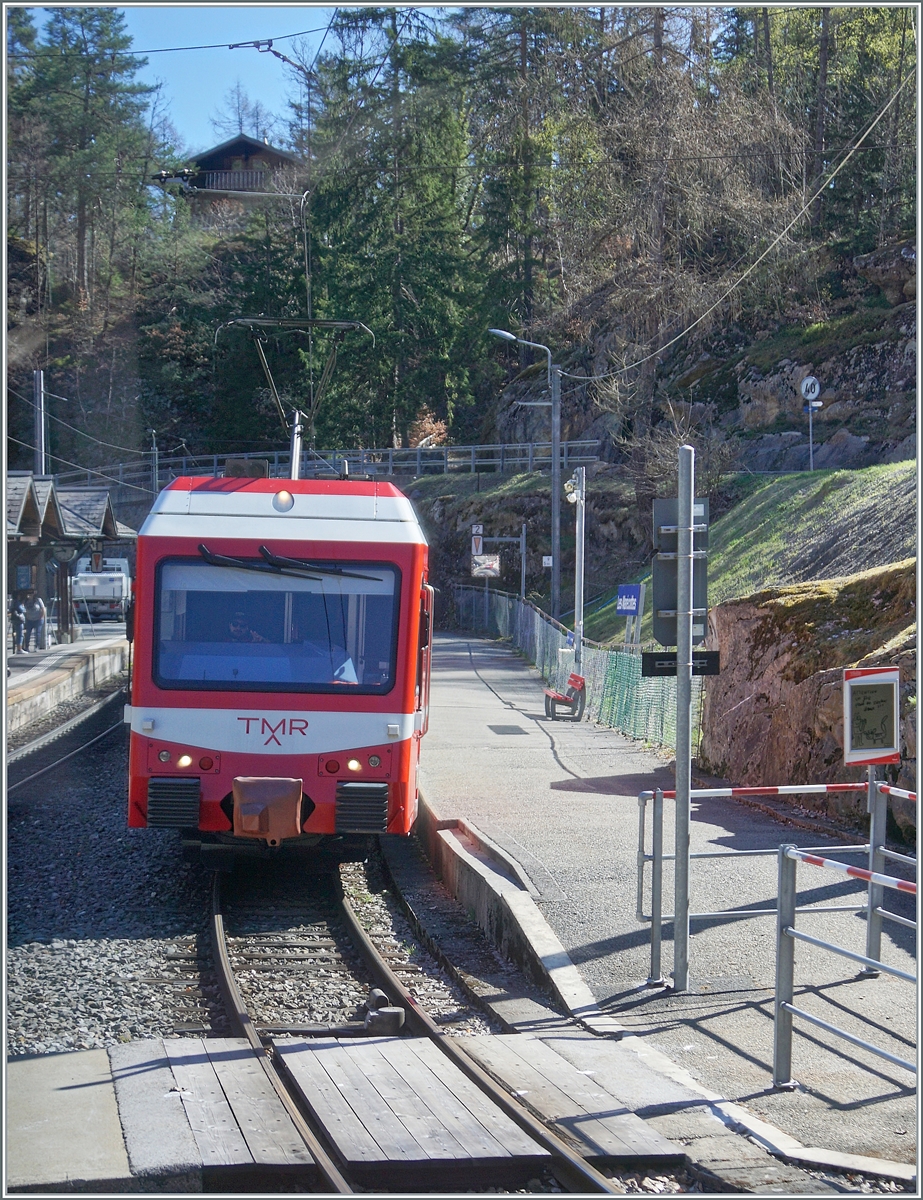 Im neu gestalteten Bahnhof von Martigny (TMR) ist der neue TMR Beh 4/8 91 bzw. SNCF 891 (90 85 838 0891-4) auf einer Testfahrt. Leider fuhr der Zug nur knapp bis hinter das Ausfahrtsignal statt bis zum Prellbock, so dass dieses Bild nicht ohne störende Elemente zustande kam. 9. April 2026