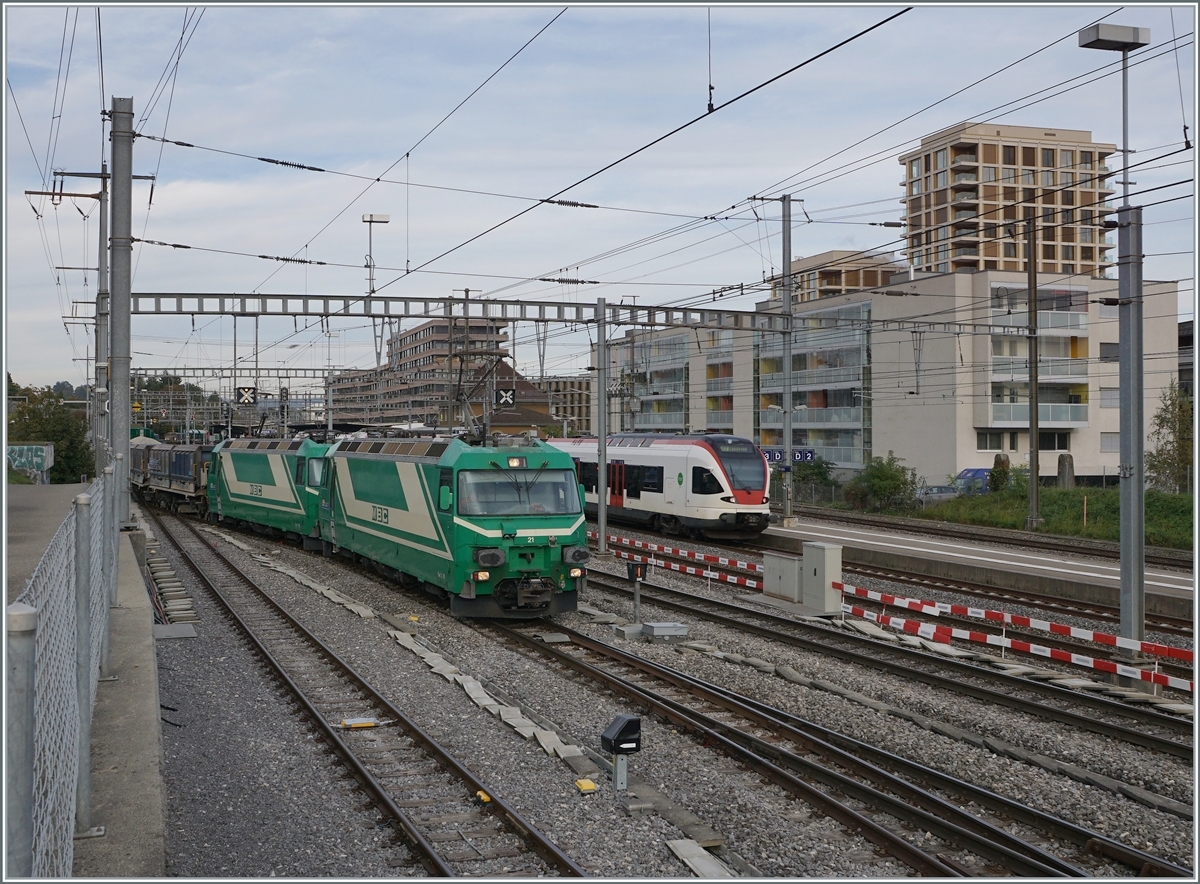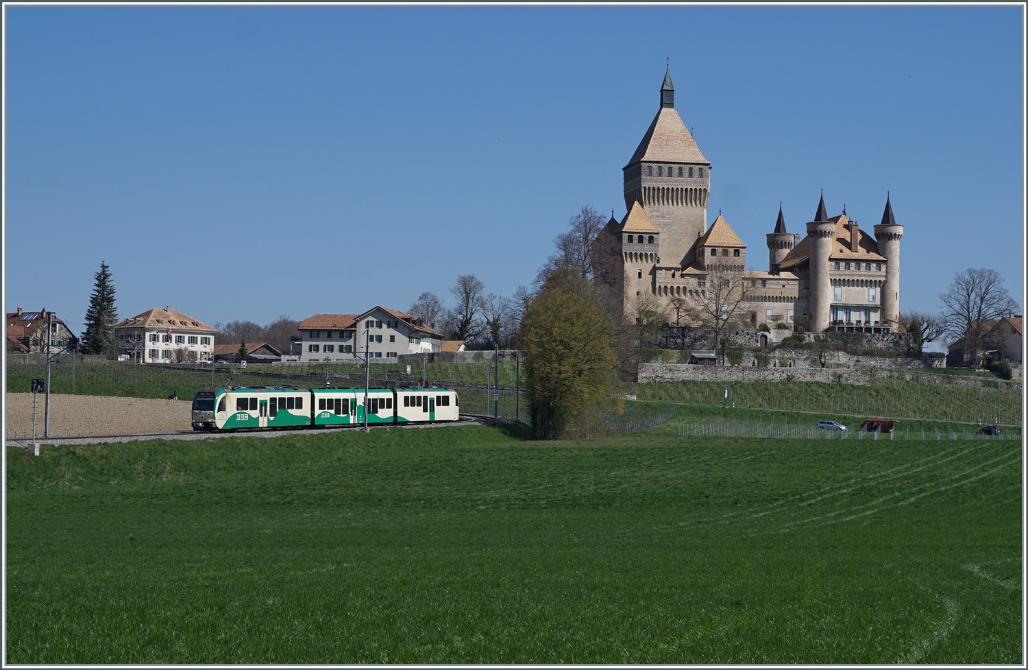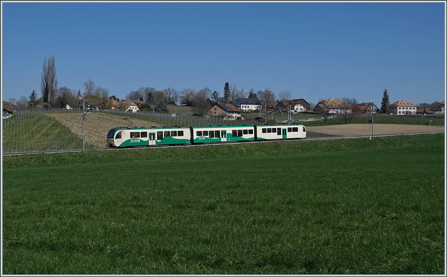 Ein BAM MBC Regionalzug von Bière nach Morges unterwegs erreicht Ballens.