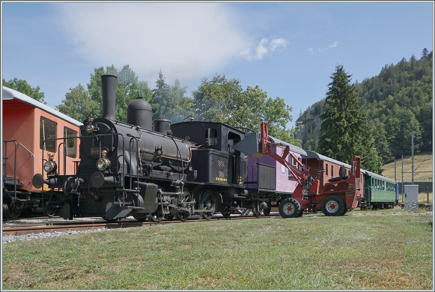 Die aus Le Pont in Le Braussus angekommene E 3/3 8523 wird für die Rückfahrt vorbereitet.