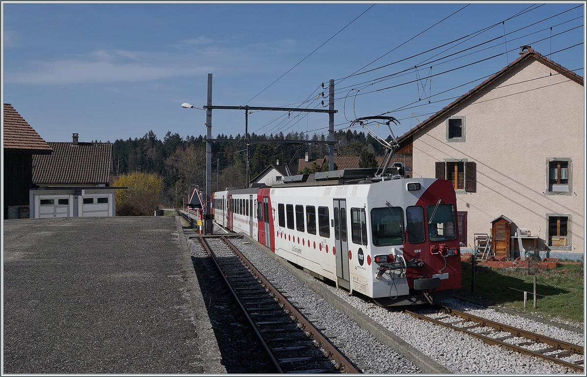 Ein TPF SURF Be 2/4 - B ABe 2/4 erreicht sein Ziel Broc Fabrique. Wenige Tage nach dieser Aufnahme wurde der Schmalspurverkehr eingestellt um die Strecke umzuspuren.
