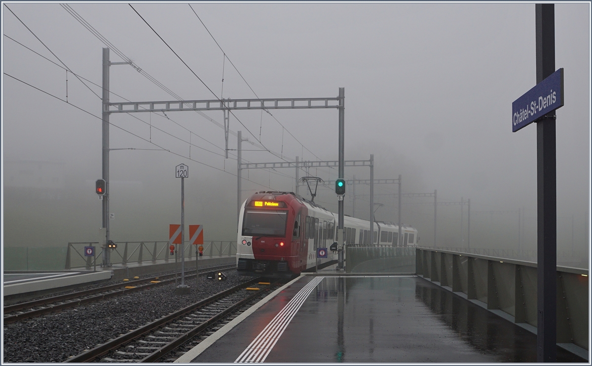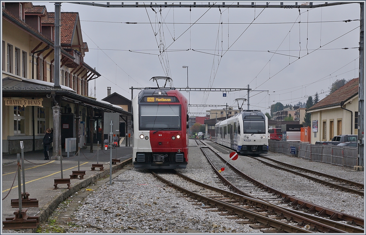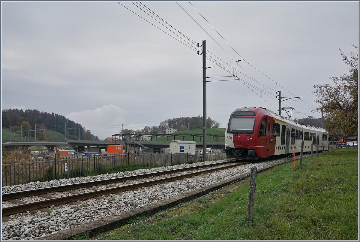 Die Blonay-Chamby G 2x 2/2 105 bei einer Rangierfahrt zum Umfahren ihres Zuges in Chatel St-Denis.