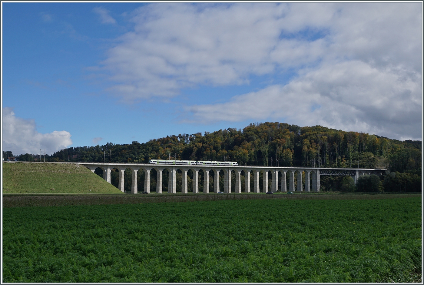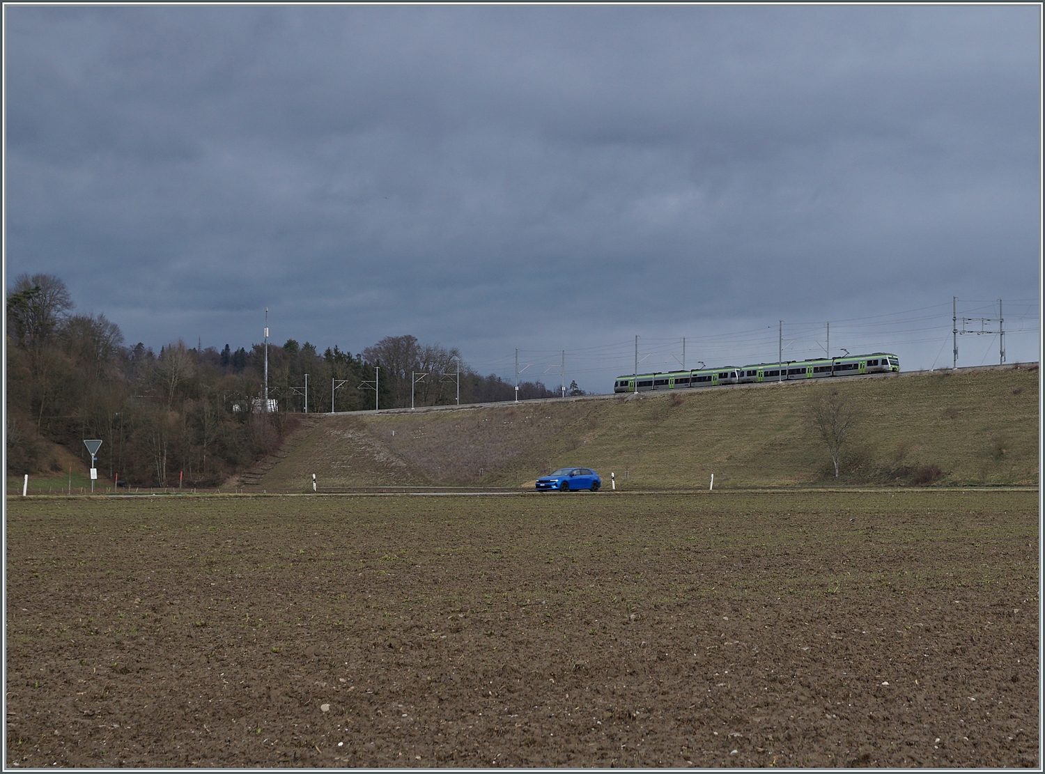 Bereits fest im Griff der MIKA RABe 528 ist die Strecke Bern - Neuchâtel - La Chaux-de-Fonds. Im Bild der in Neuchâtel ankommende MIKA RABe 528 105 (der hier Baustellenbedingt für die Rückfahrt nach Bern wendet).