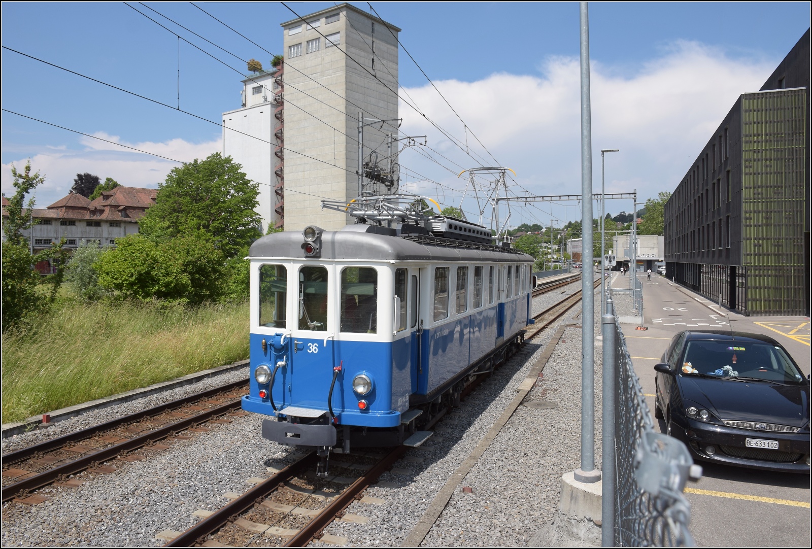 Das Blaue Bähnli VBW BDe 4/4 36 auf der falschen Strecke nach Worb.