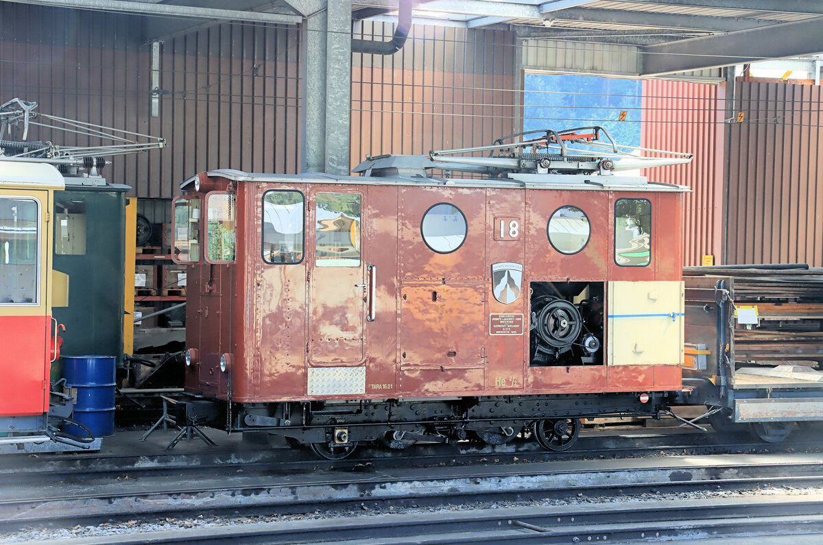 Lok 18 der Schynigen Platte Bahn mit geöffneter Seitenwand und "spitz" gestellten Frontfenstern. Lok 18 ist die ehemalige Wengernalpbahn Lok 58. 23.August 2022 Peter Ackermann