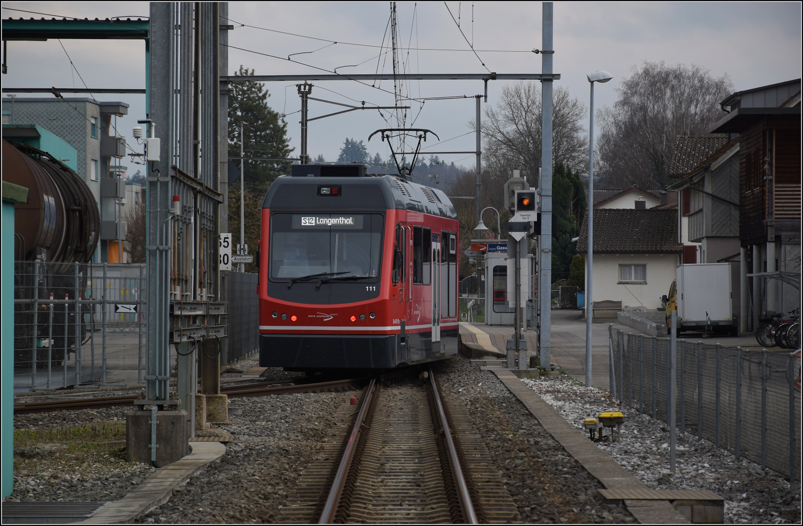 Der ex FW Be 4/4 14 mit seinem Bt (1)14 wendet in St-Urban für die Rückfahrt nach Langenthal.