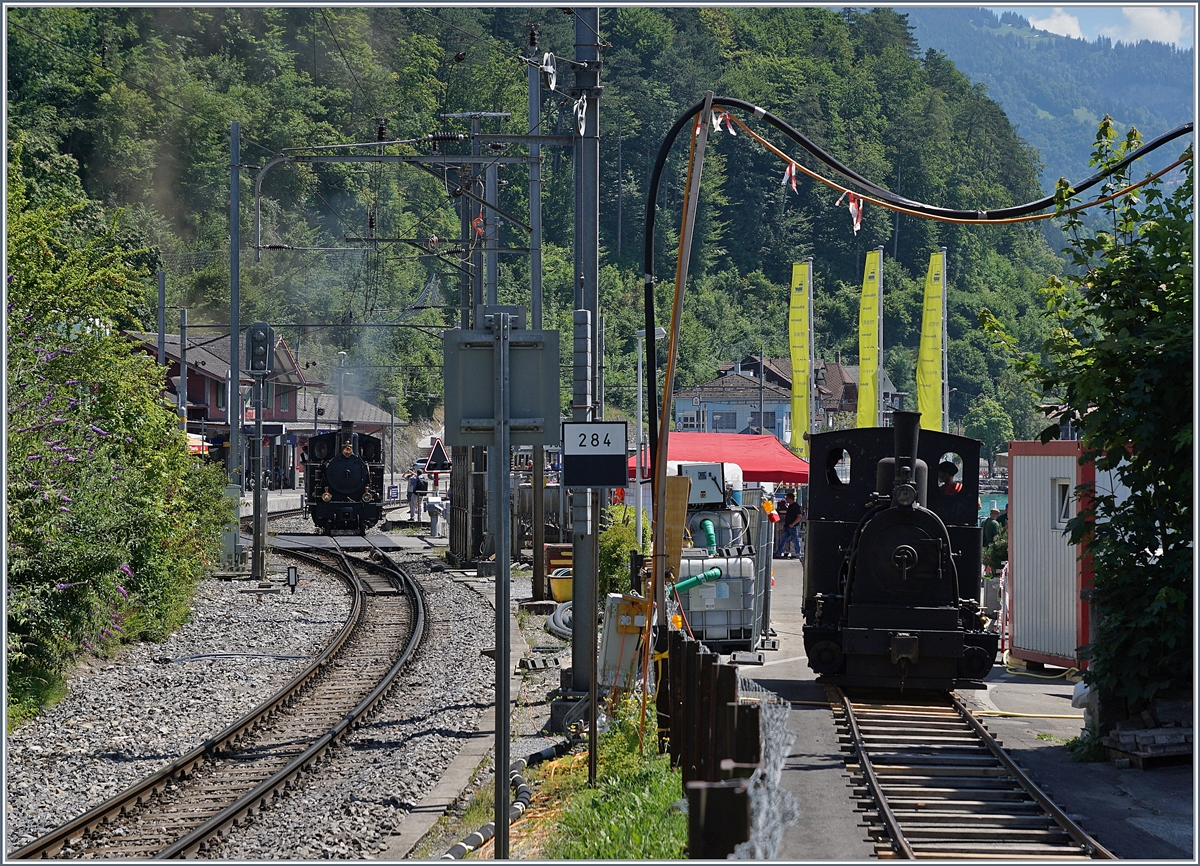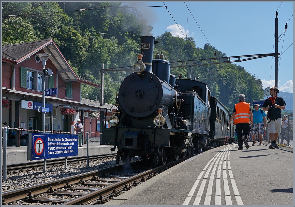 Schweizer Dampftage Brienz 2018: Die SBB Brünig Talbahn Dampflok G 3/4 208 der Ballenberg Dampfbahn hat Brienz erreicht, nun mit dem Kamin Richtung Interlaken, was zumindes fotografisch gesehen weniger Vorteilhaft war.