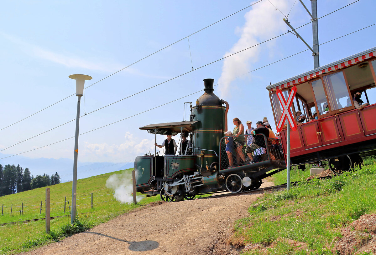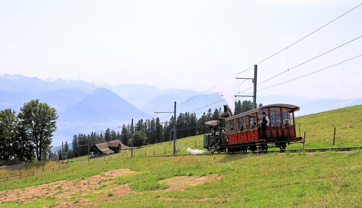Die RB (Rigi Bahnen) H 2/3 16 erreicht mit ihrem Dampfzug 1223 Rigi Staffel.