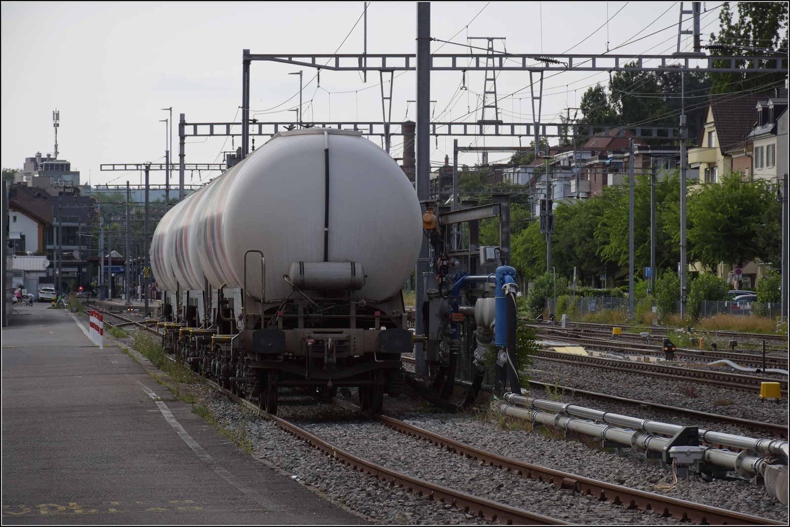 Die S-Bahn mit Re 450 057 in Uetikon am See fährt doch tatsächlich an 2 Paar Halbschuhen vorbei... Vorne Ee 3/3 16313. Woher auch immer die Halbschuhe (oder Glätteisen) kommen, eine urplötzliche Rudelbildung einer fast ausgestorbenen Art erscheint doch reichlich ungewöhnlich. Juli 2023.