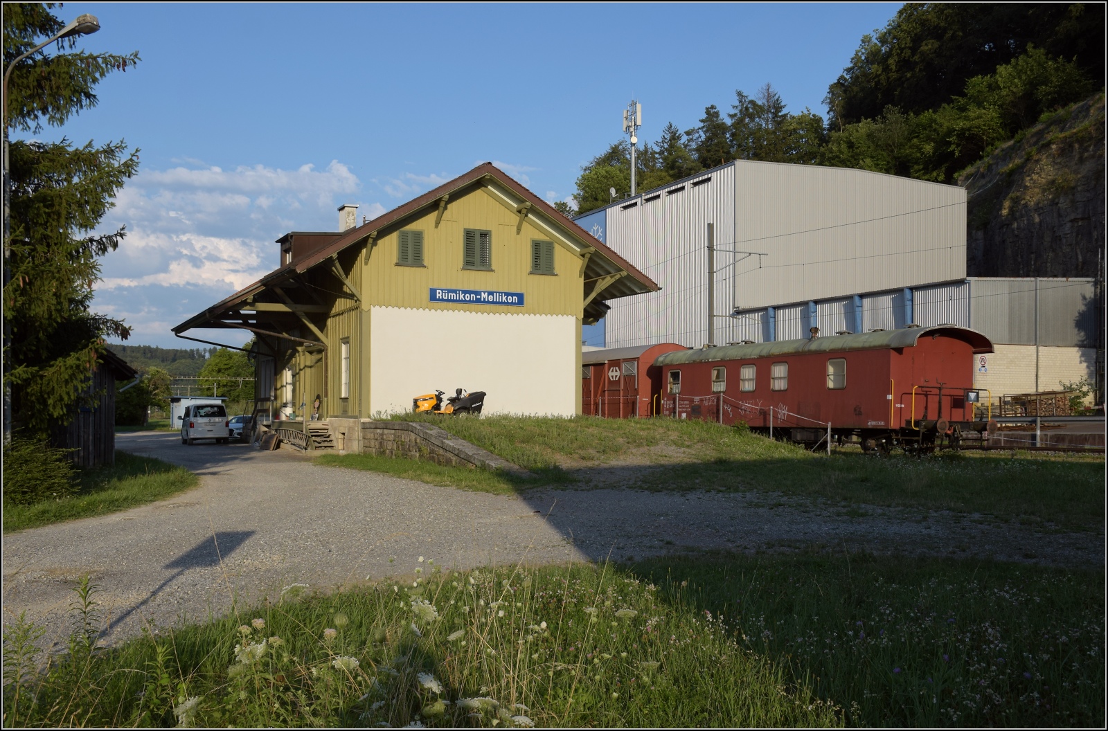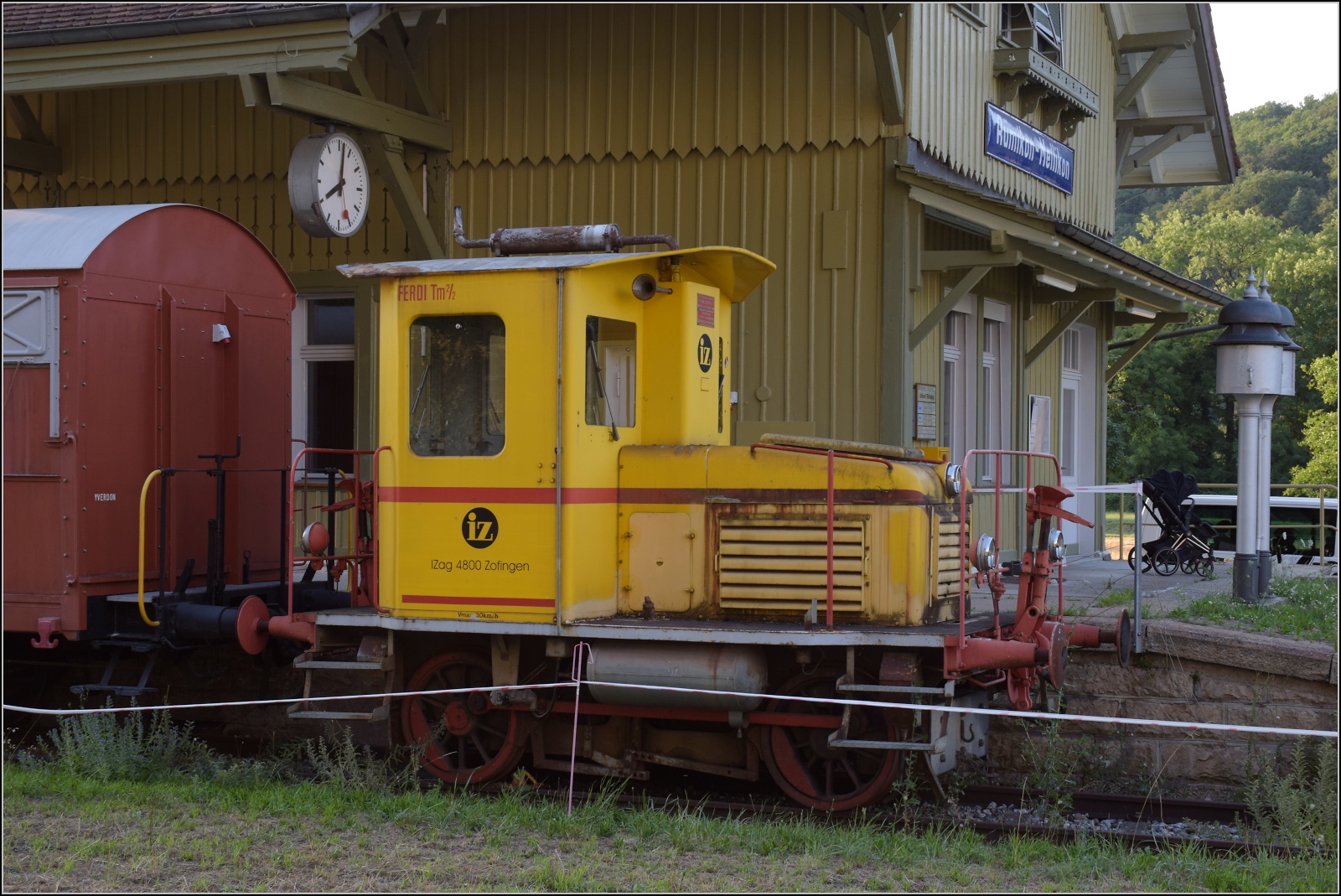 Zwei BR 0 580 der Müller-Rail AG im alten Bahnhof von Weiach. Die Maschinen sind im NVR Deutschland eingetragen. Hier 580 010-3, dahinter 580 008-7. April 2016.