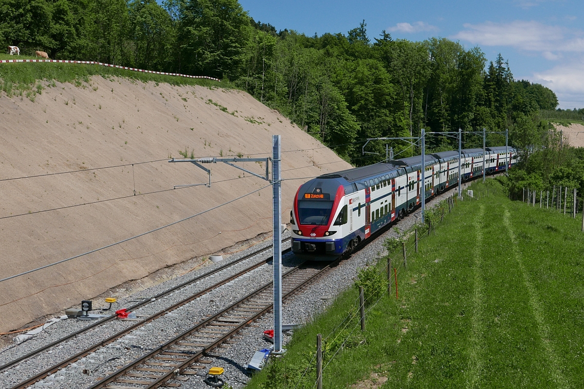460 073-0 zieht die Wagen des IR 2118, Konstanz - Zürich, bei Girsberg den Seerücken hinauf (11.06.2017).