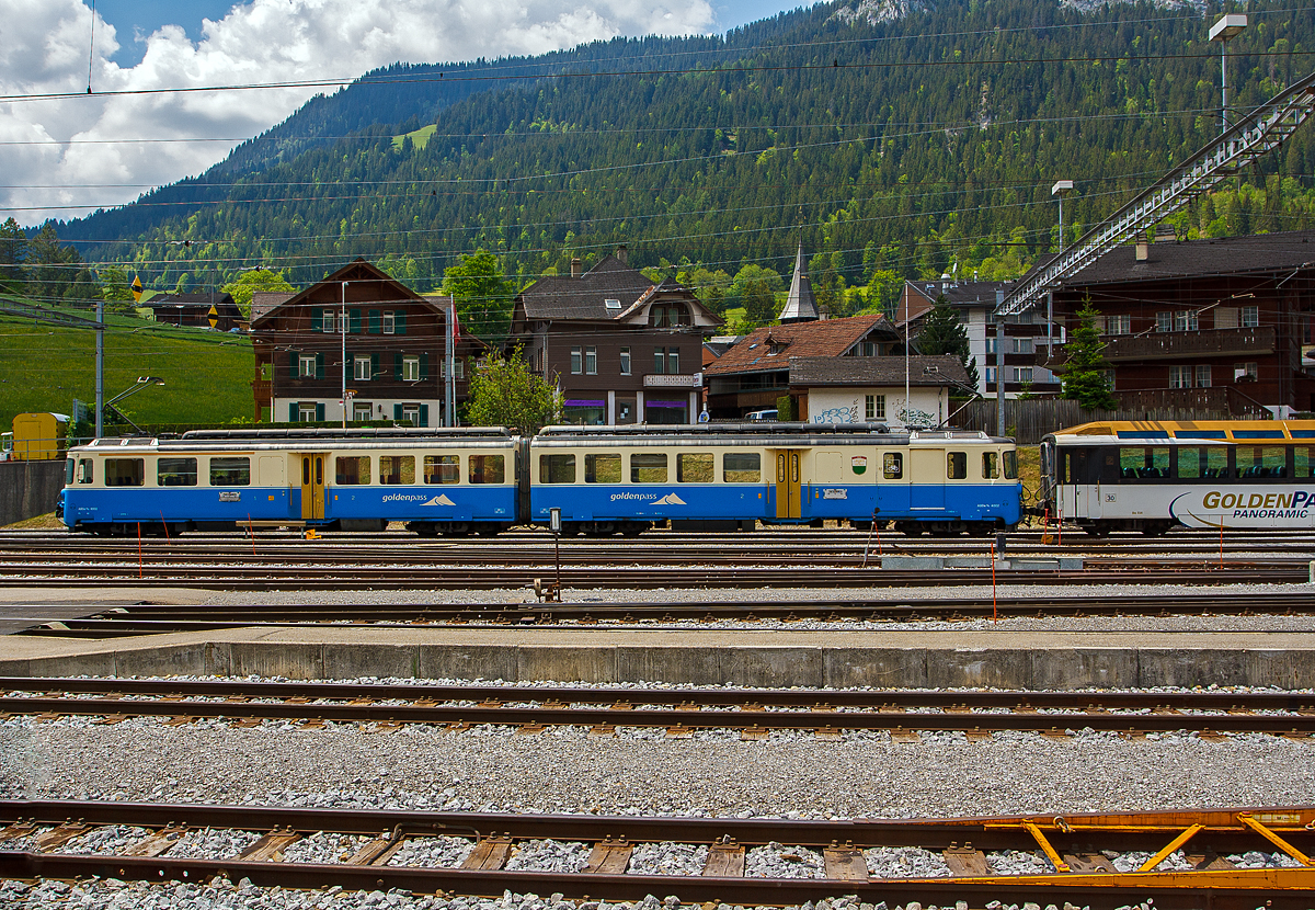 Der MOB ABt 344 des "Lenkerpendel" und abgestellte Panoramawagen mit dem ABDe 8/8 4004 vermitteln in der Lenk einen Hauch MOB aus der "vor-Stadler"-Zeit.