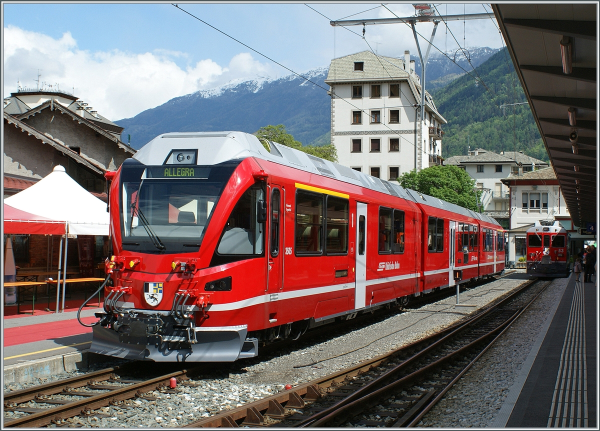 Der RhB Abe 8/12 3505  Allegra  steht für den offiziellen Festakt in Tirano zur Präsentation der neuen Züge bereit.