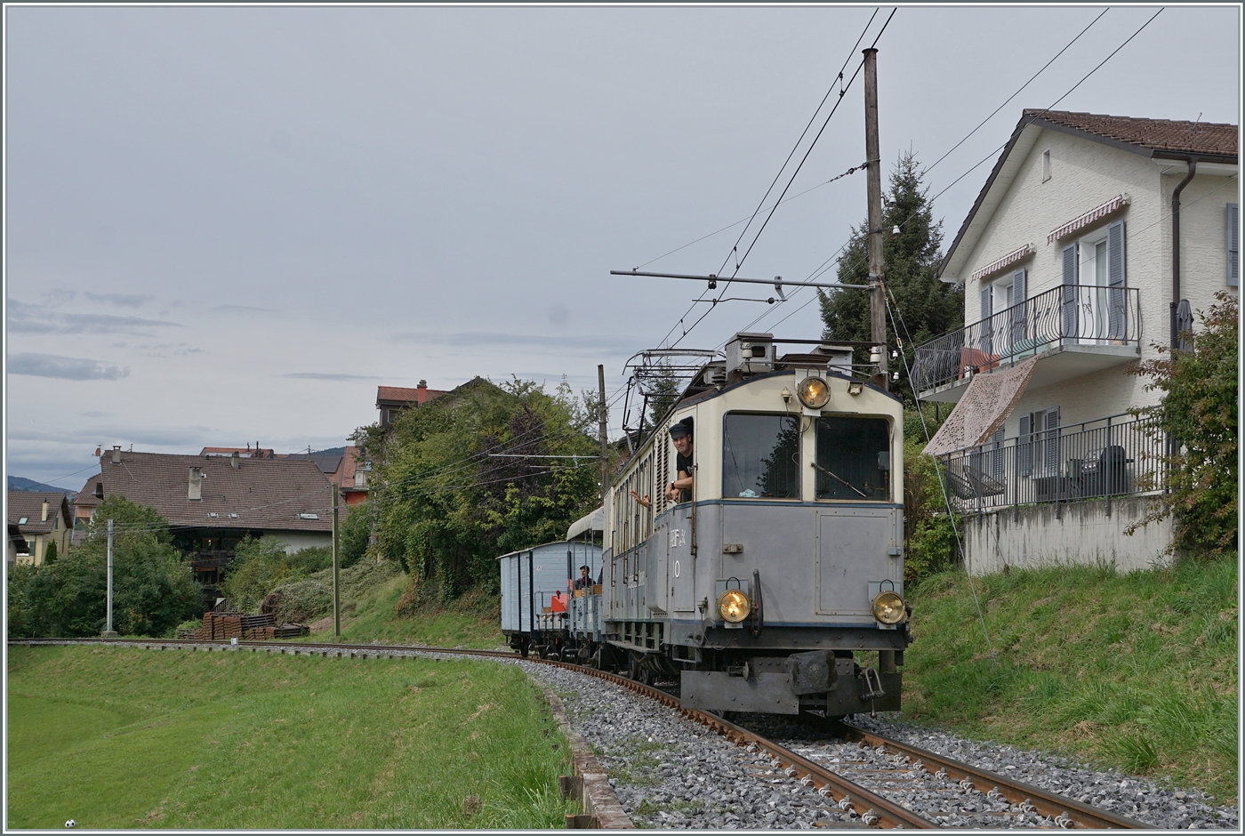 Les chemins de fer disparus - Die verschwundenen Bahnen (LLB 1915 - 1967) Der Leuk Leukerbad Bahn (LLB) Triebwagen mit der Anschrift ABFe 2/4 N° 10 der Blonay Chamby Bahn beim Manöver in Blonay.