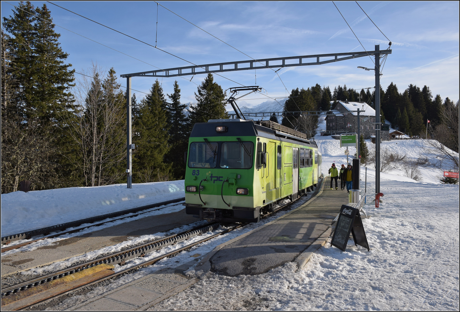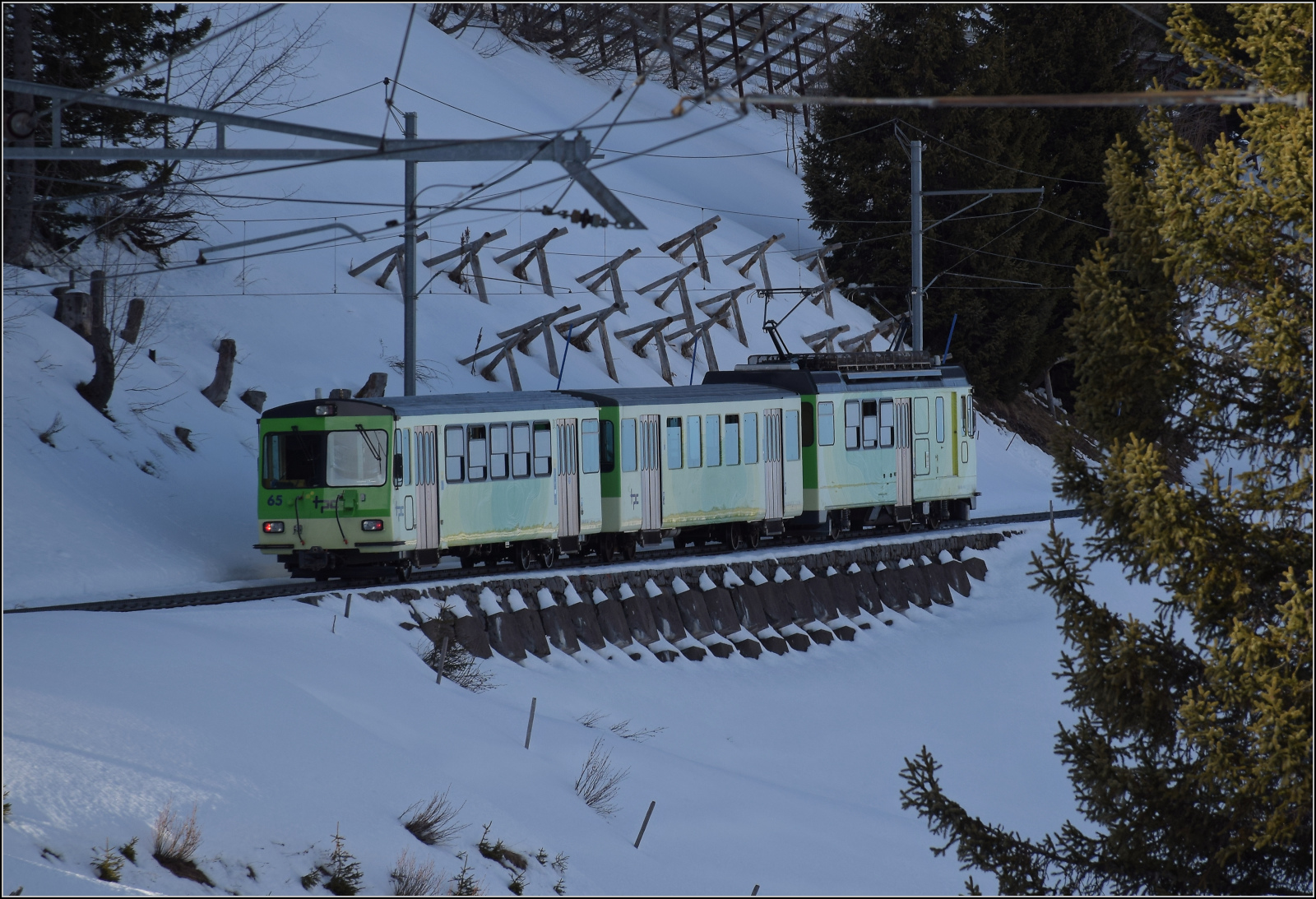 Der BDeh 4/4 81 mit seinem Bt 63 hat die Haltestelle Bex Pont-Neuf hinter sich gelassen und ist mit seinem 537 schon fast am Ziel in Bex.