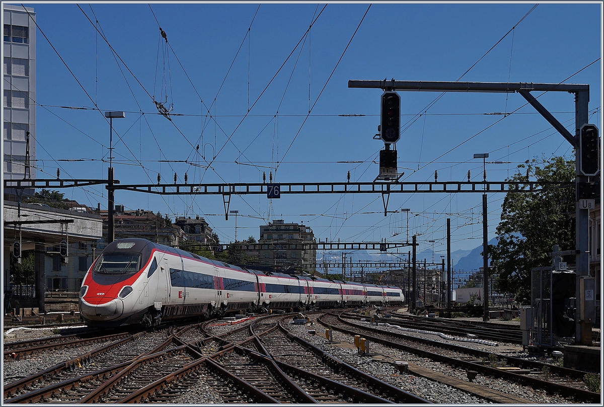 Der SBB ETR 610 RABE 505 022-7 Johann Wolfgang von Goethe bei der Durchfahrt in Vevey.