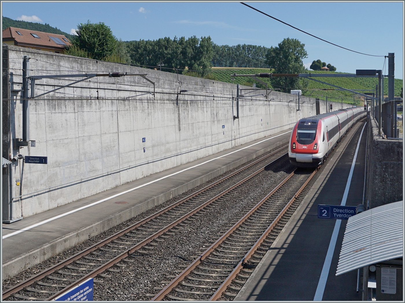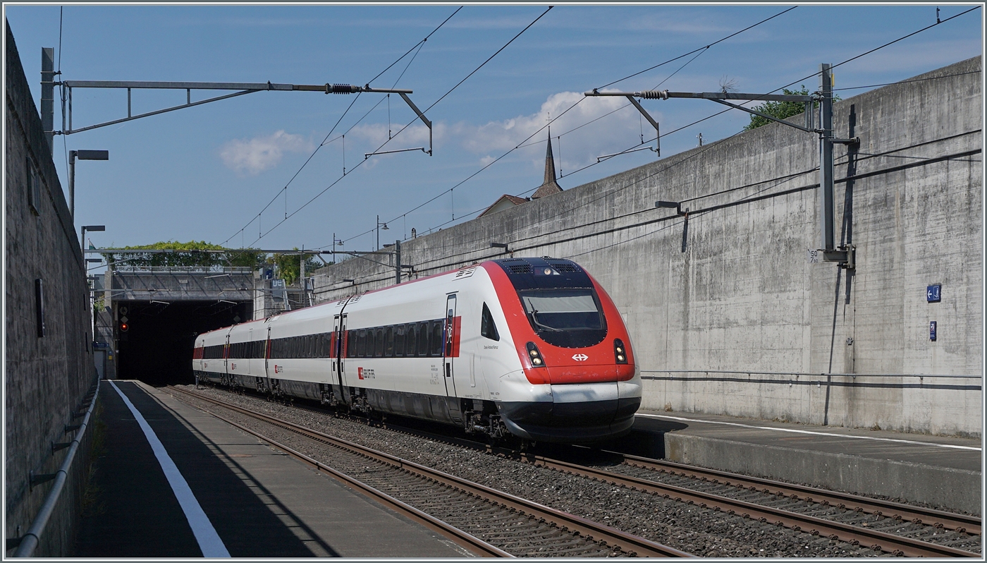 Ein SBB ICN RABDe 500 ist zwischen Grenchen Süd und Lengnau auf der Fahrt in Richtung Biel/Bienne.