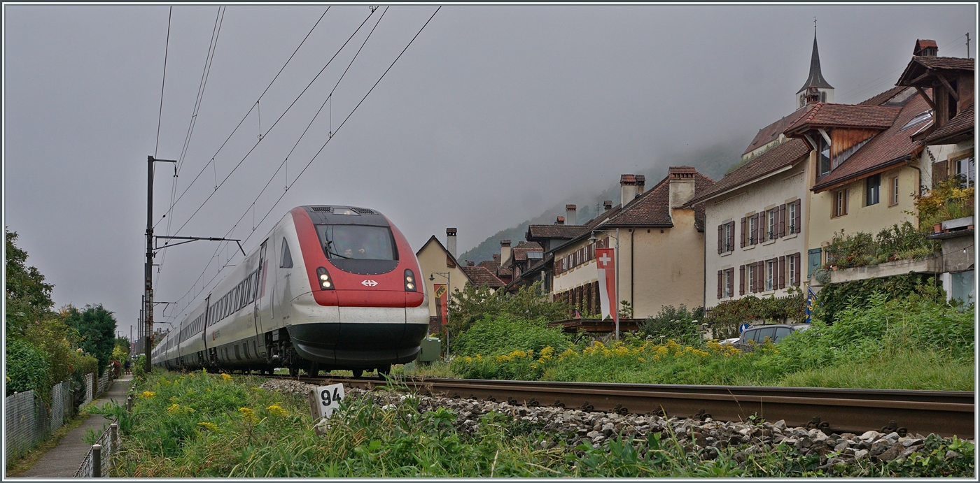 In Grandvaux, so sagt man, werfen die Deutschschweizer ihre Rückfahrkarte zum Fenster hinaus, damit sie nicht mehr nach Hause fahren müssen, da der Bahnhof eine so überwältigende Aussicht bietet. In Concise wird wohl niemand auf den Gedanken kommen ähnliches zu tun, denn dieser Bahnhof hätte wohl grosse Chancen bei einem Wettbewerb des hässlichsten Bahnhofs einen Spitzenrang zu ergattern. Dies hielt mich jedoch nicht davon ab, nach Concise zu fahren. Concise liegt auf der Jurasüdfussstrecke zwischen Yverdon und Neuchâtel und und ist der letzte Bahnhof im Kanton Vaud. Der heute so hässlich erscheinenden Bahnhof entstand um die Jahrtausendwende, als die Strecke auf diesem Abschnitt auf zwei Spuren umgebaut wurde, bzw. leicht nördlich der 1859 errichteten kurvenreichen Einspurstrecke dem See entlang neu erstellt wurde. Das Bild zeigt einen SBB RABDe 500 IC5 auf der Fahrt nach Lausanne.